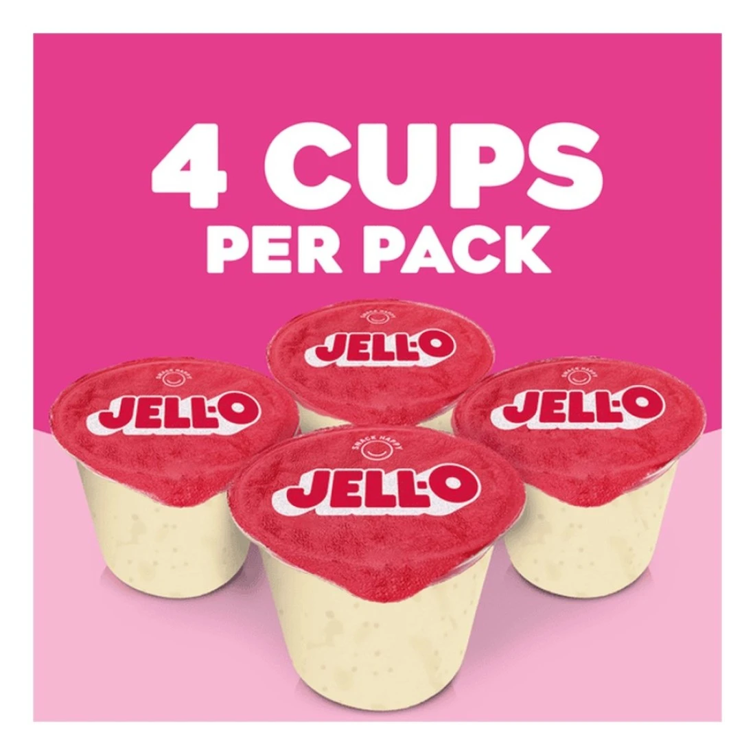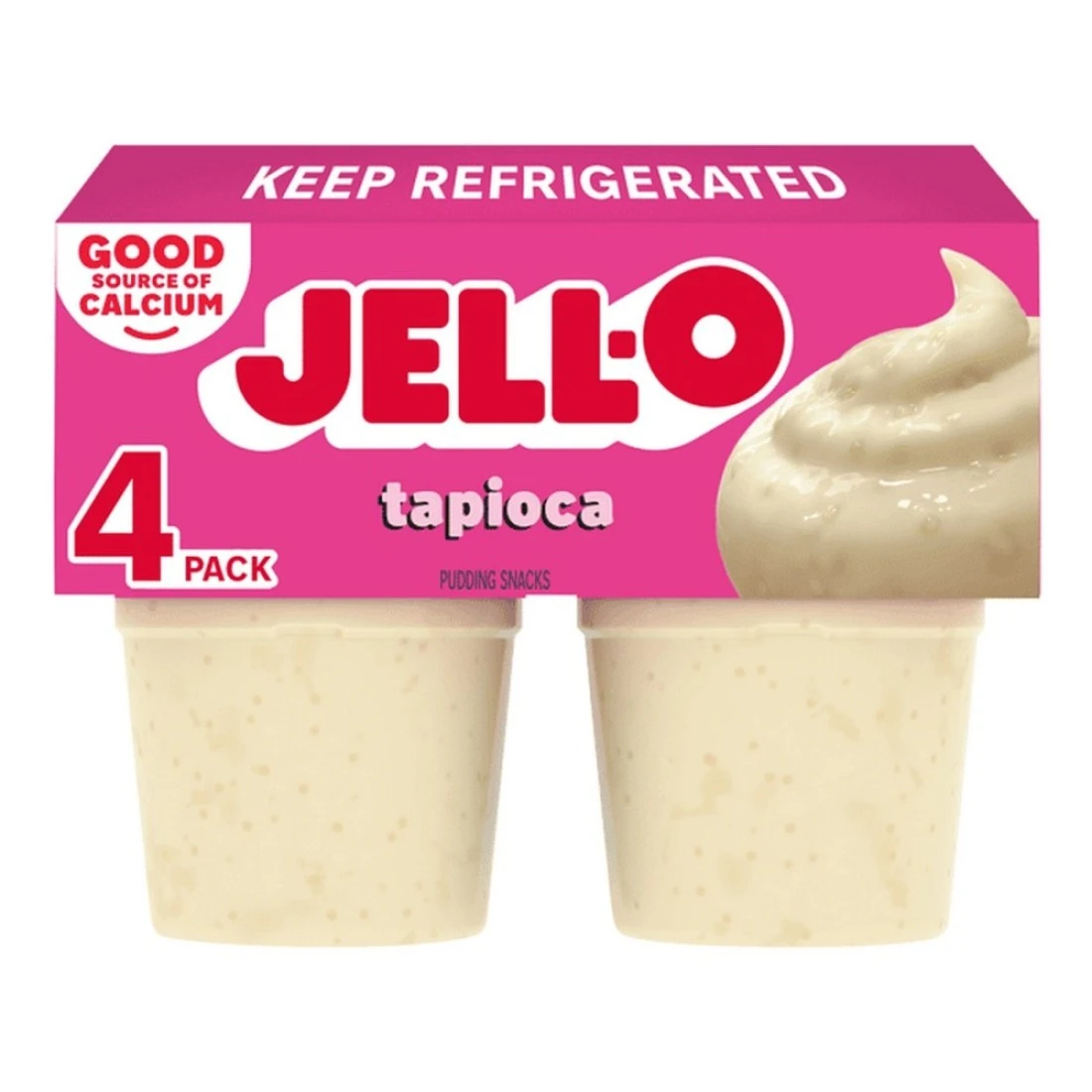 Snack happy. Jell-O Original Tapioca Artificially Flavoured Ready-to-Eat Pudding Snack Cups are a delicious, ready-to-eat, on-the-go snack. Enjoy pudding fun in every bite with our individual snack cups that are perfect for packing in a lunchbox, eating on the go or snacking at home. Add some wonder to your day with a delicious, convenient snack. Made with milk, our artificially flavoured vanilla and chocolate swirl pudding cups are a good source of calcium. Each pudding snack contains 110 calories per serving. Each 15.5-ounce sleeve contains four chocolate vanilla swirl artificially flavoured pudding cups for quick and easy snacking. Spoon up a smile with Jell-O Original Chocolate Vanilla Swirls Ready-to-Eat Pudding Cups.