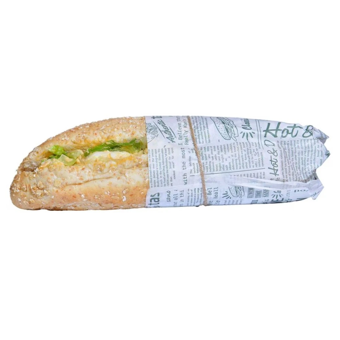 ingredients : Oat Baguette (wheat flour, whole meal bran, yeast, salt, improver (Flour treatment agent, ascorbic acid (E300), Emulsifier (E472e)) water, sugar, vegetable shortening, milk powder, oats), Boiled egg, mayonnaise (soybean oil, water, pasteurized egg yolk, thickener E1422, vinegar, sugar, salt, natural mustard flavor, thickener E415, preservative E200, acidity regulator E270, lemon juice concentrate, anti-oxidant E385), Lettuce, Cream Cheese (cow milk, pasteurized cream (milk), salt, stabilizer:E 407 carrageenan; E410 locust bean gum, potassium sorbate, selected lactic cultures, calcium chloride, rennet), spring onion, lemon juice, White Vinegar (water, acetic acid), salt, olive oil, parsley, Yellow Mustard (water, vinegar, mustard seeds, garlic powder, salt, turmeric), white pepper powder.