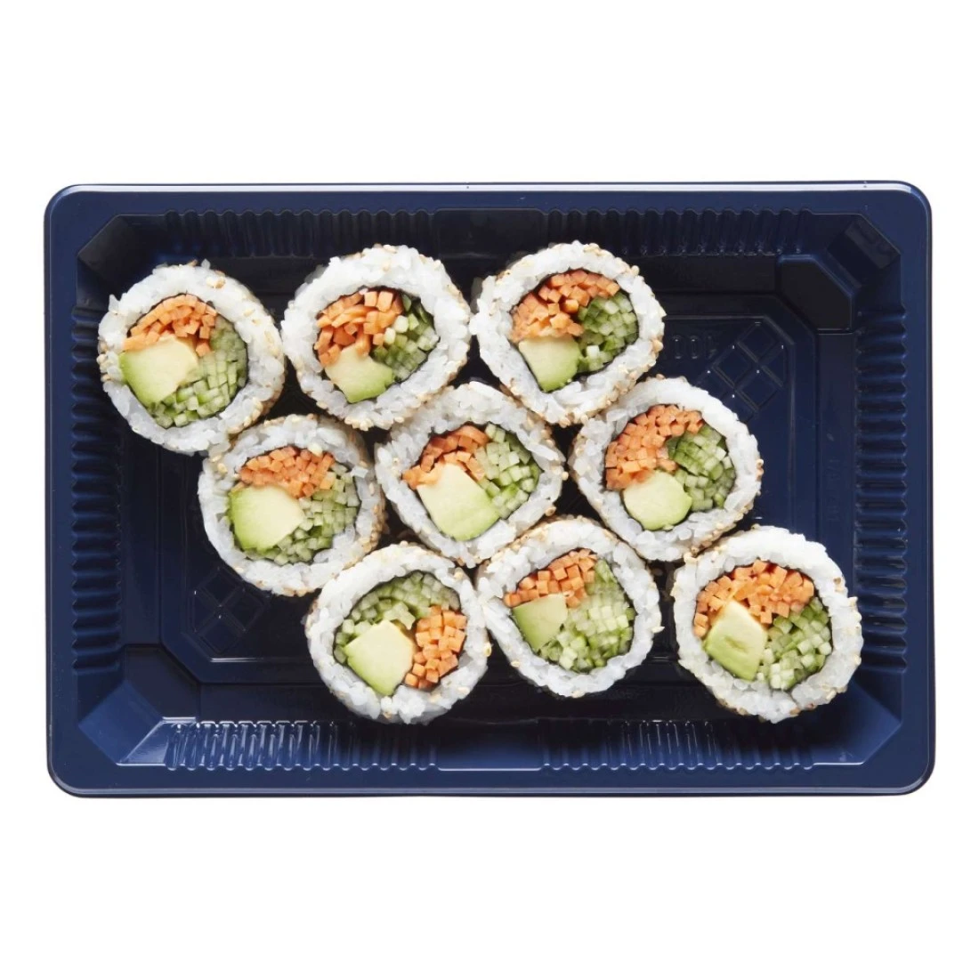 ingredients : Vinegared Sushi Rice, Avocado, Cucumber, Pickled Carrot, White Sesame Seed and Nori Seaweed.