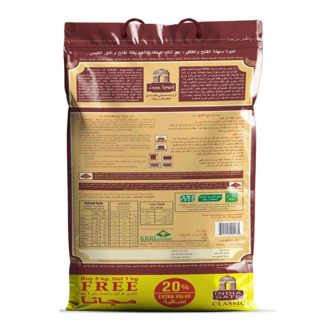 India Gate Classic Basmati Rice, 5kg+1kg