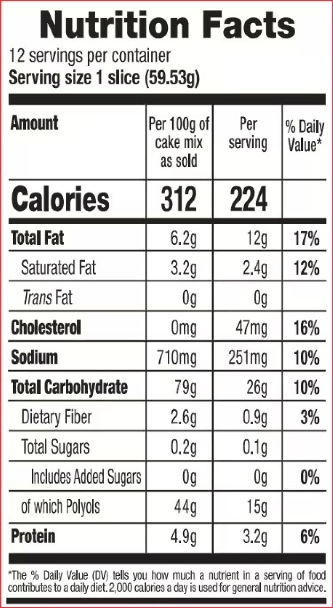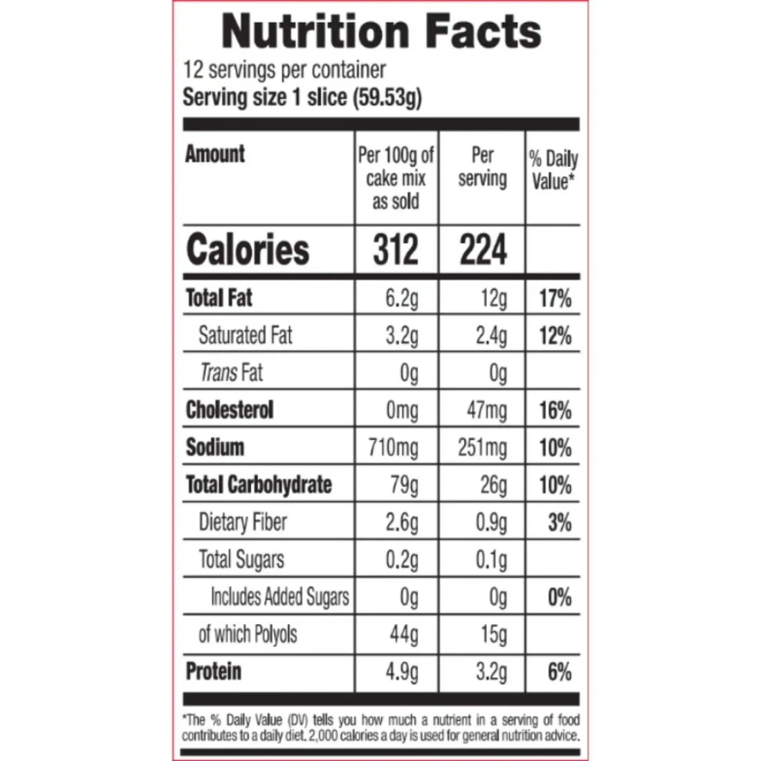 ingredients : Sweetener (e965(i)) (430000 Mg/kg), Bleached Self Rising Wheat Flour (Wheat Flour, Raising Agents (e500(ii), E541(i)), Fat Reduced Cocoa Powder (5%), Palm Fat, Corn Starch, Salt, Raising Agents ( E341(i)), E341(ii)), Stabilizer (e415), Nature Identical And Artificial Vanilla Flavouring, Sweetener (e955) (134 mg/kg)