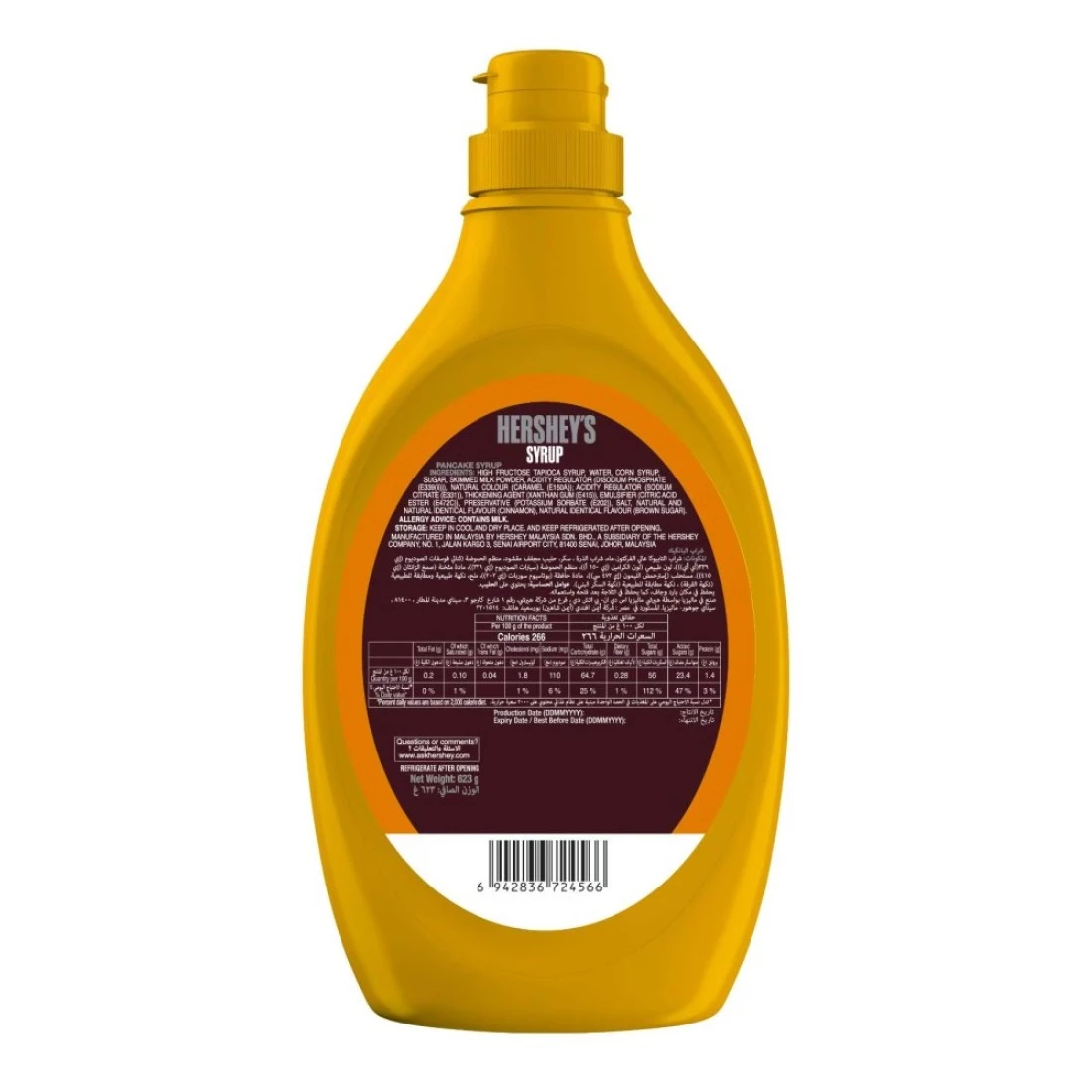 Enjoy the delightful sweetness of Hershey's Pancake Syrup (623g), perfect for drizzling over pancakes, waffles, and French toast. This rich chocolate syrup adds an indulgent touch to breakfast or dessert, elevating any meal to a sweet treat. Perfect for both classic and creative uses, it’s a must-have for pancake lovers!