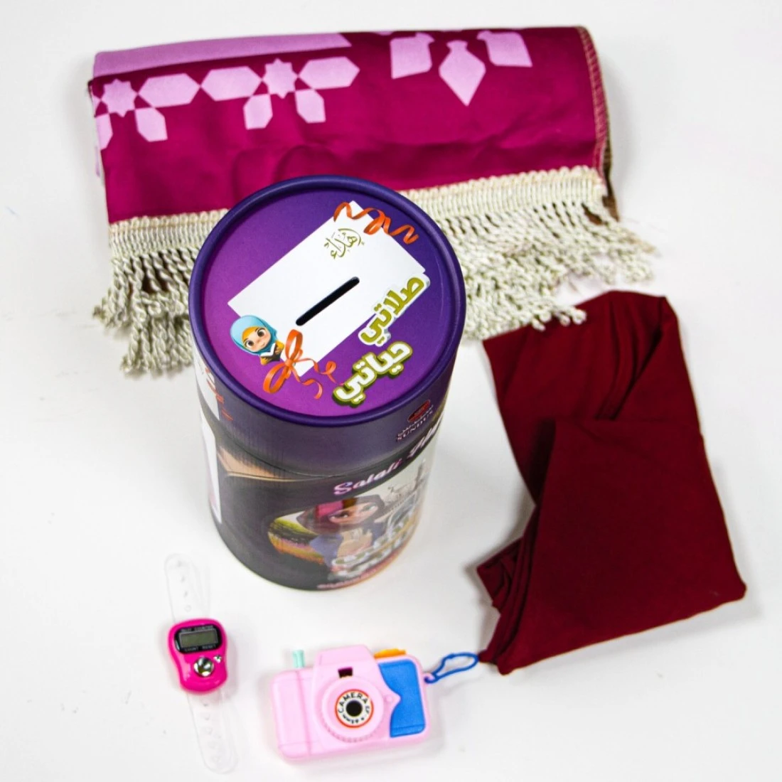 My Life Prayer Rug for Little Girls Includes Prayer Rug, Hijab and Tasbih Ring in Beautiful Gift Box for Girls