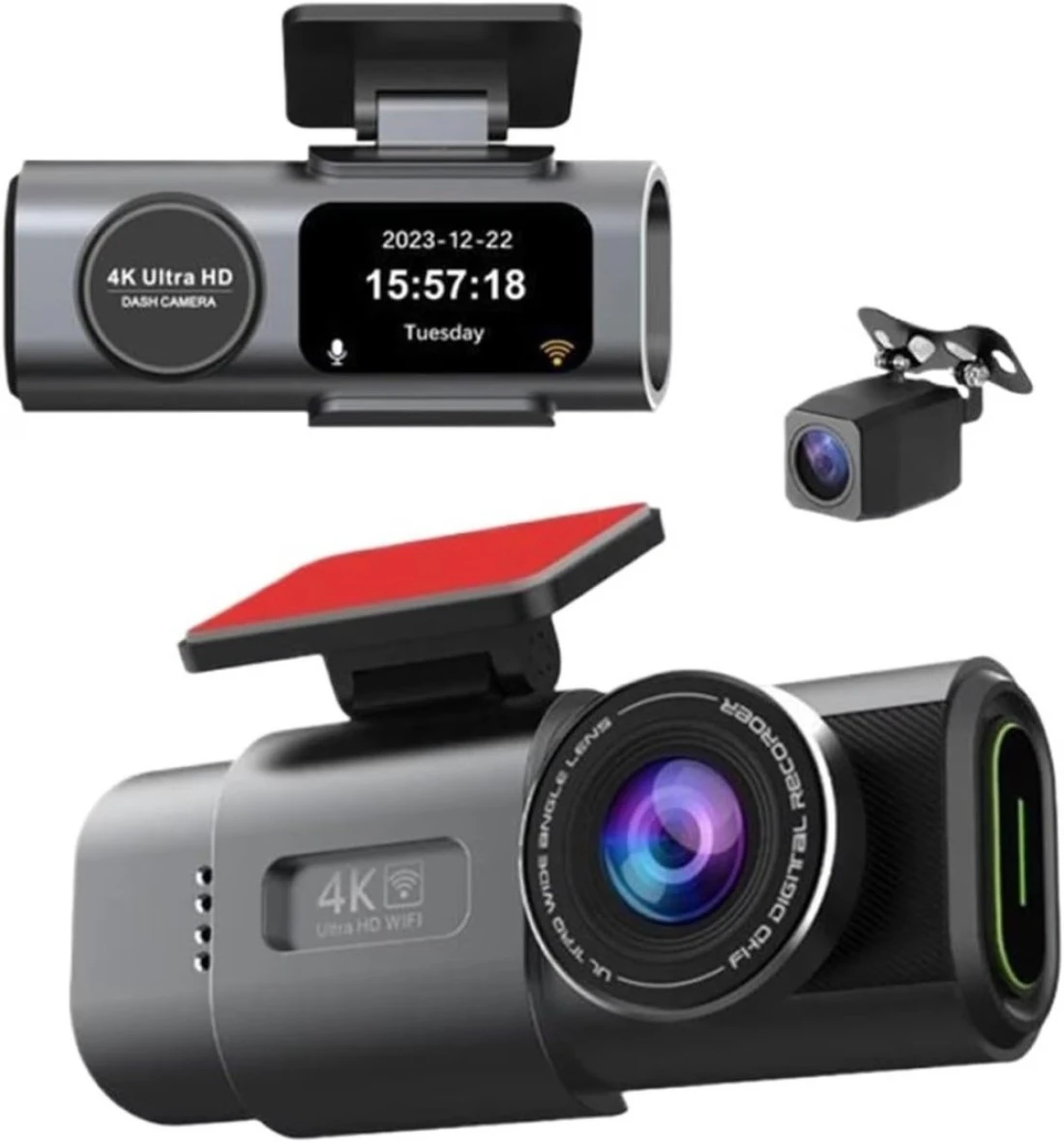 Smart Dash Cam 4K WiFi GPS - Front and Rear Car Camera with App, 4K Ultra HD Dash Camera, USB Easy Setup, Loop Recording, Night Vision, Parking Mode
