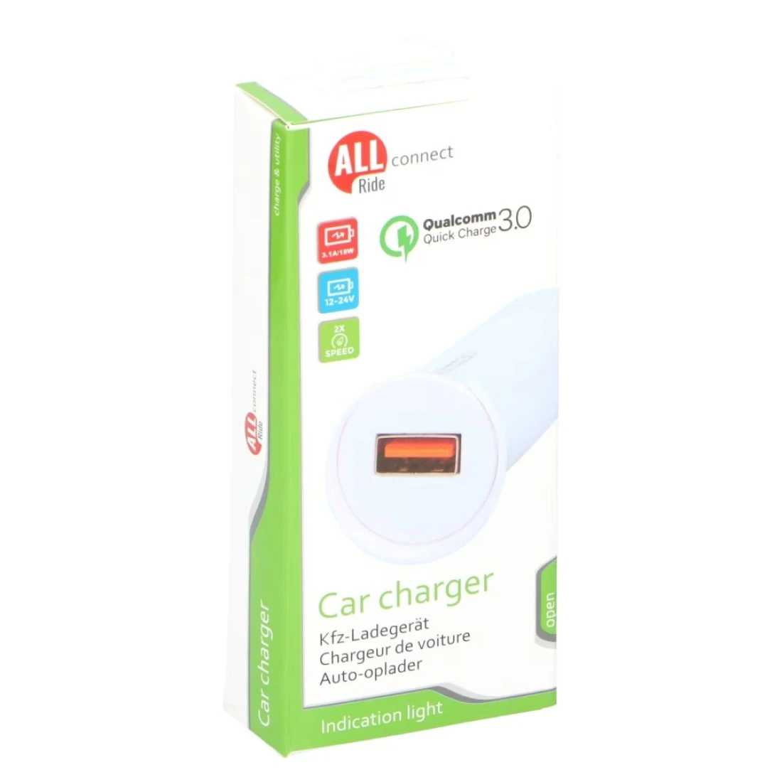 All Ride Connect Qualcomm 3.0 Quick Charge Car Charger 3.1A 18W 12-24V White