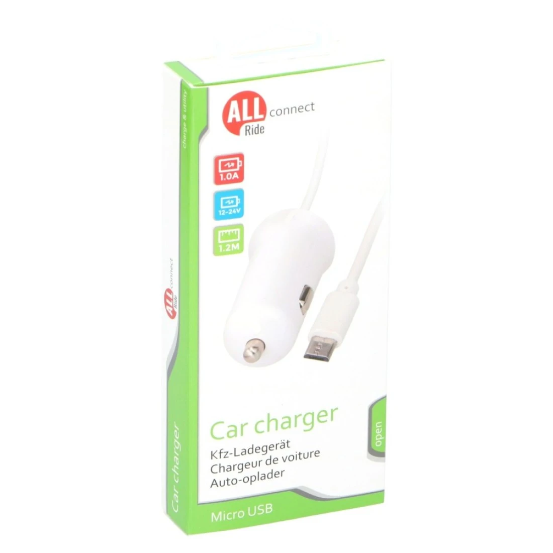 All Ride Connect Car Charger 1.0A 12-24V 1.2m White