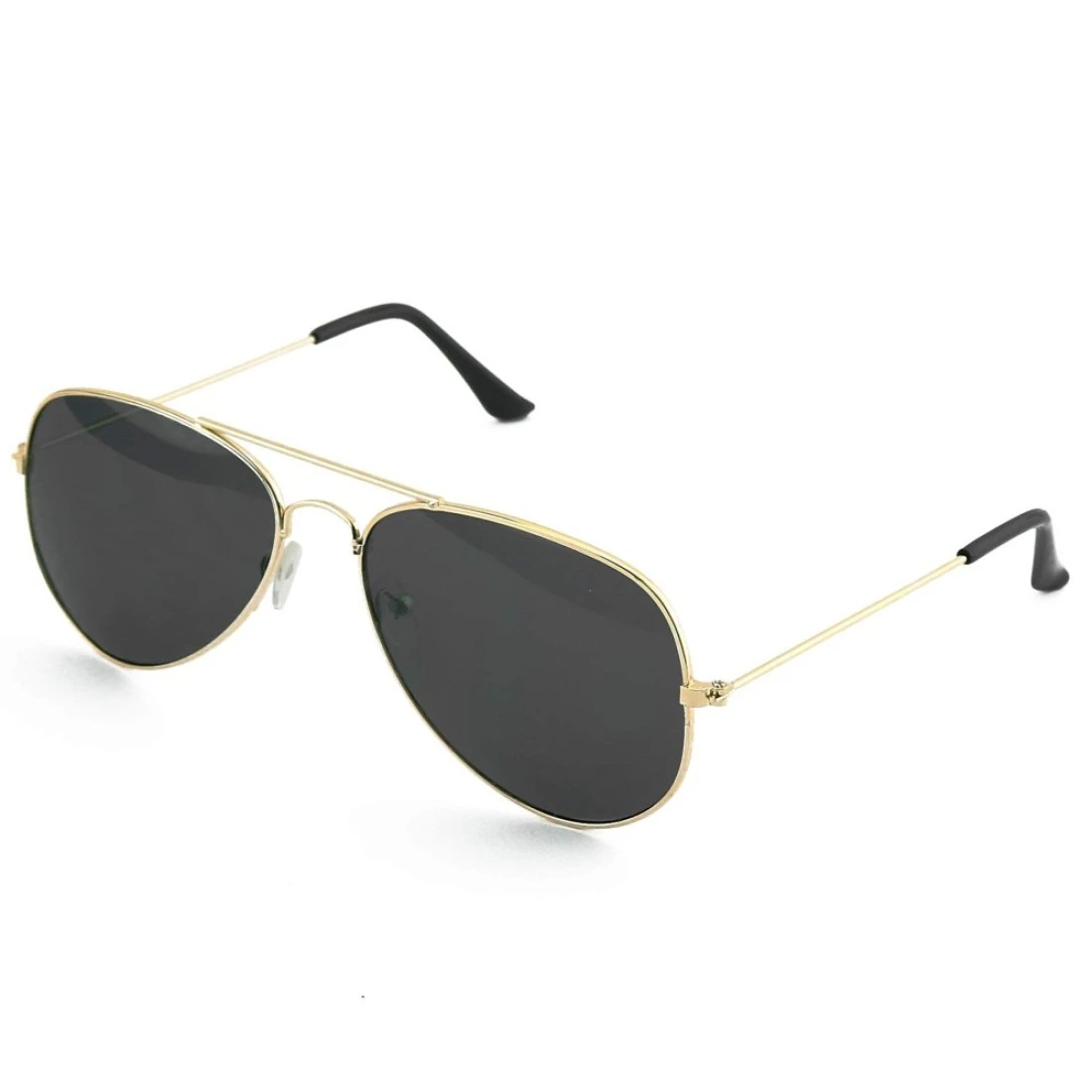 Skeleteen Black Gold Aviator Sunglasses - Military Style Dark Sun Glasses with Gold Metal Frame and UV 400 Protection
