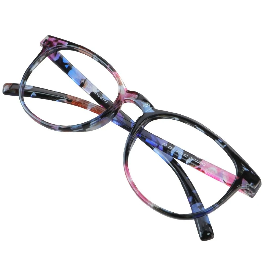 Blue Light Blocking Glasses for Women/Men, Computer Reading, Stylish Oval Frame (Pink Floral, No Magnification)