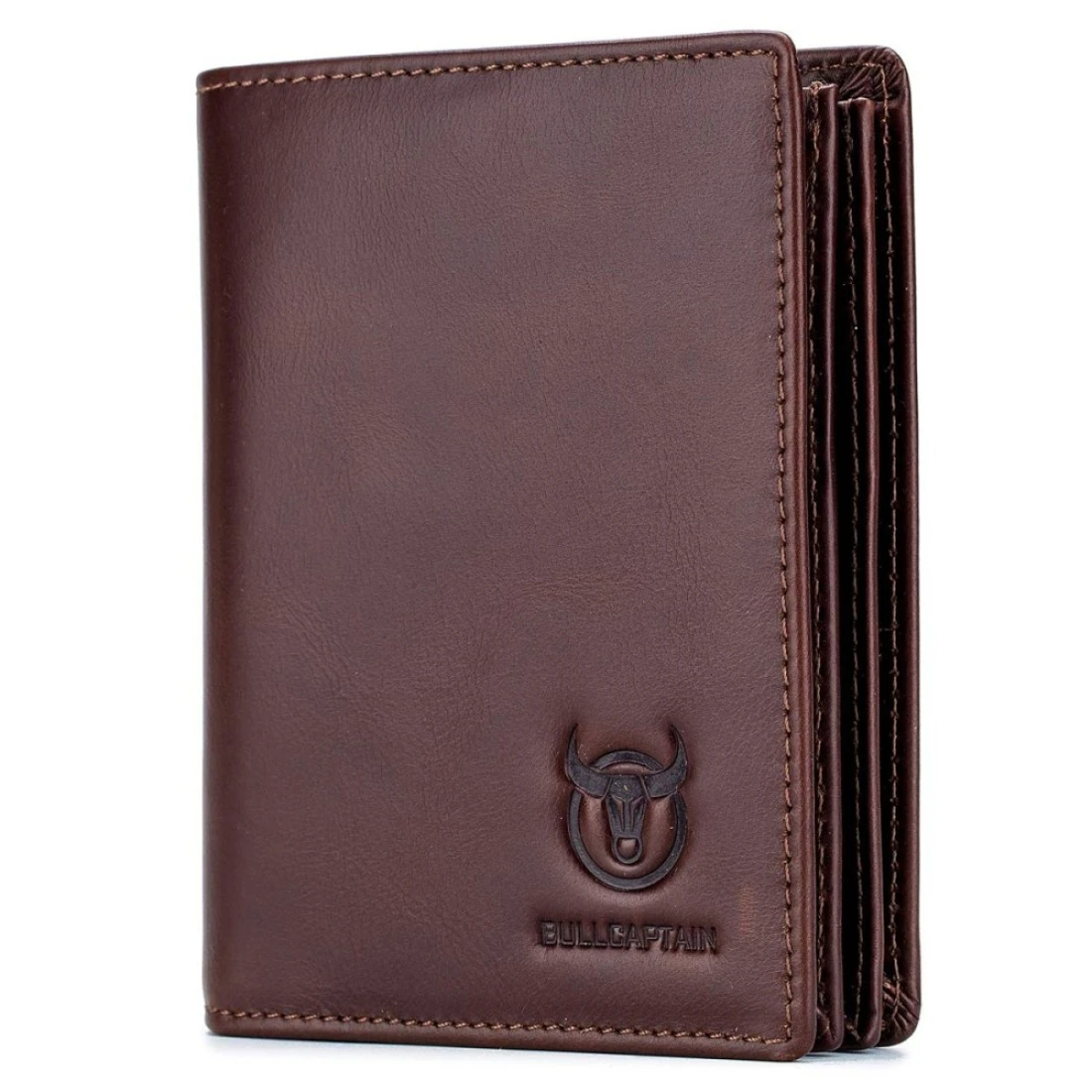 BULLCAPTAIN Large Capacity Genuine Leather Bifold Wallet/Credit Card Holder for Men with 15 Card Slots QB-027 (Brown)