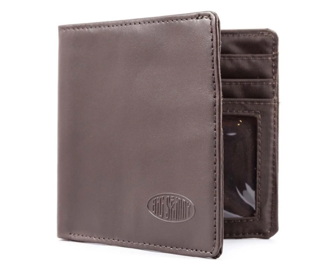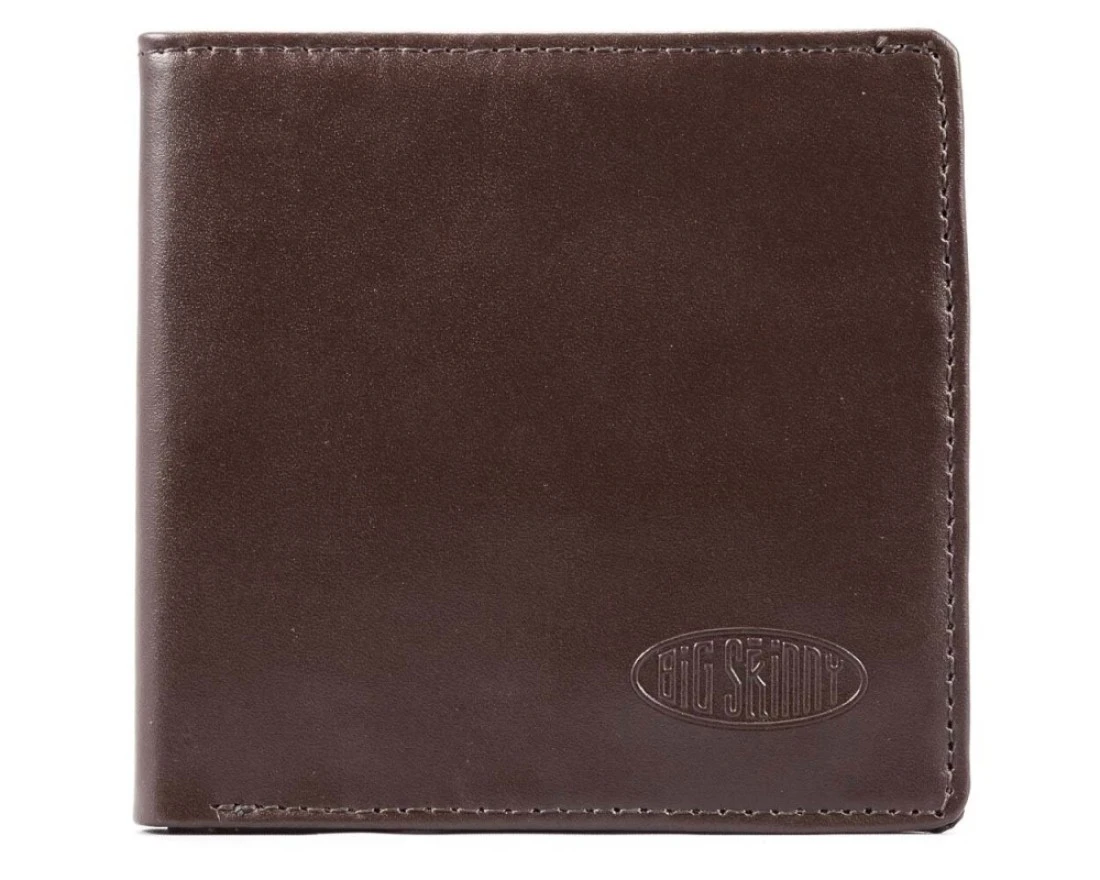 Big Skinny Mens World Leather BiFold Slim Wallet Holds Up to 35 Cards Brown
