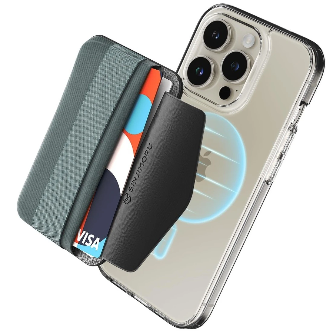 Sinjimoru Magnetic Wallet for iPhone Magnetic Card Holder with Flap AntiSlip for Cards for MagSafe Wallet with Grip Compatible with iPhone 15141312 Series MBand Blue Grey