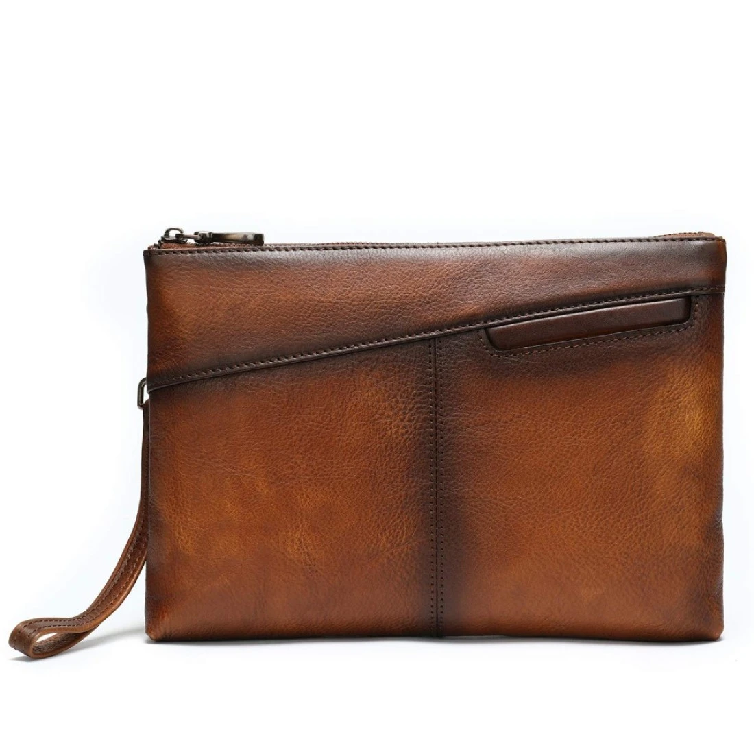 NIUCUNZH Genuine Leather Mens Clutch Bag Man Purse Handbag 12 inches Large Hand Bag Big Clutch Wallet Dye Brown
