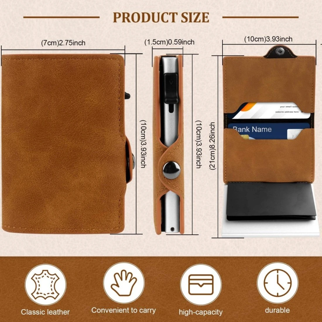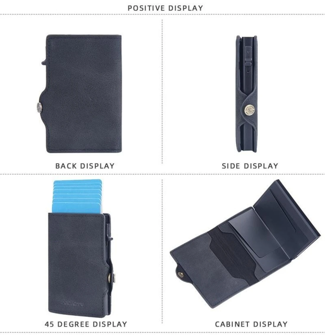 RFID Card Holder Wallet - New PU Leather RFID Protected Automatic Pop-up Bank, Credit, ID Card Holder Case with Button, Card Wallets Purse Unisex. (Black)