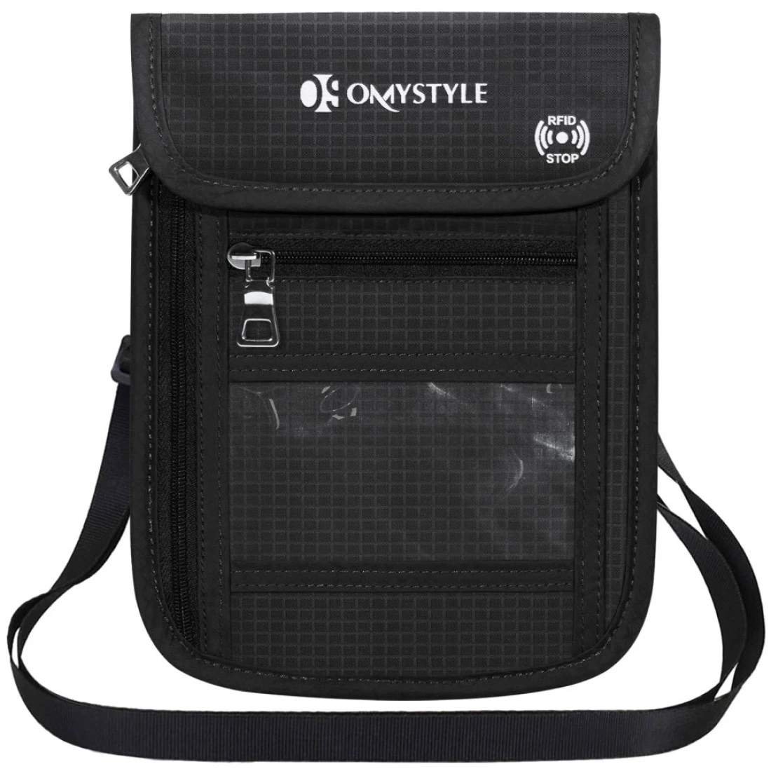 OMYSTYLE Neck Wallet, RFID Passport Holder for Travel, Adjustable Neck Strap, Waterproof Neck Pouch for Men & Women to Keep Cash, Credit Cards and Documents Safe, Black (8x6)