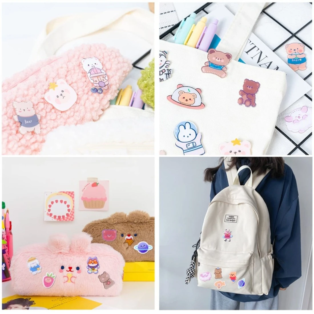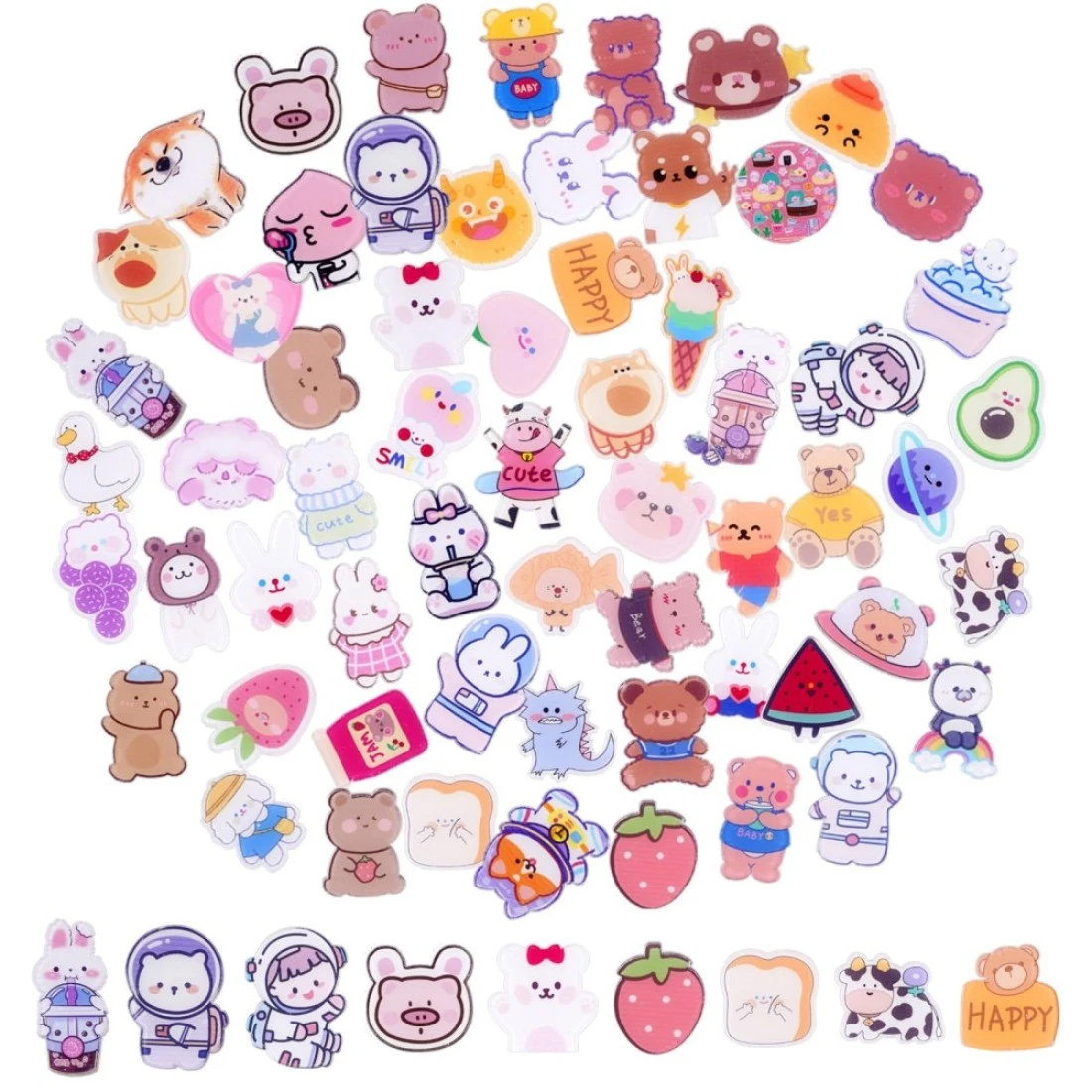60 Pcs Acrylic Cute Pins Set for Backpacks Aesthetic Cartoon Kawaii Sheep Dog Rabbit Bear Girl Brooch Pin for Clothing Bags Jackets Hat Bag Accessories