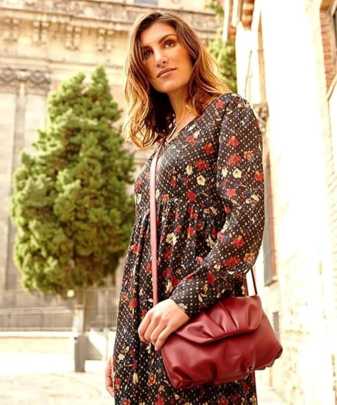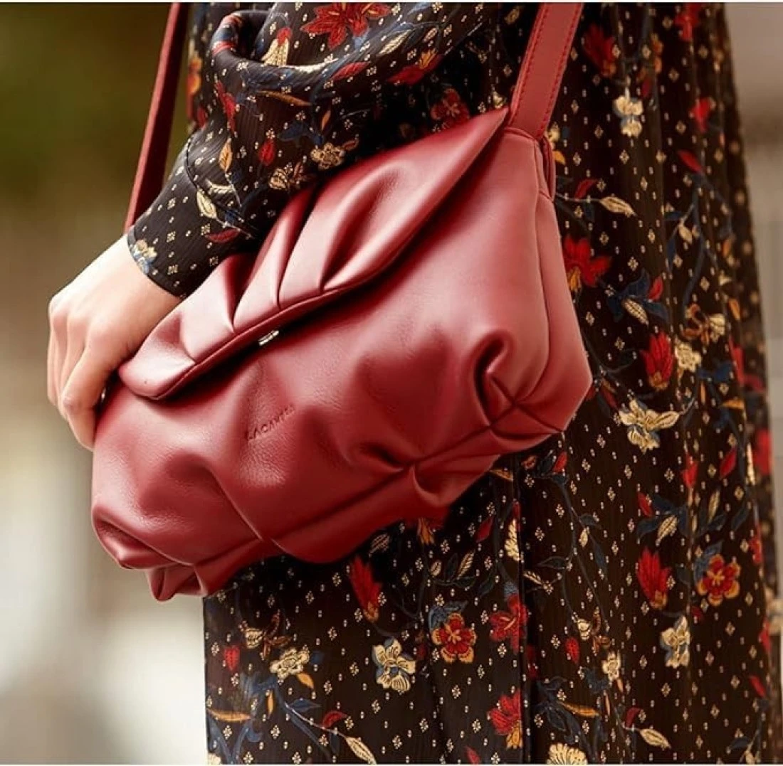 - Pleated LEATHER bag that can fit a mobile phone, wallet, keys, glasses, a notebook.