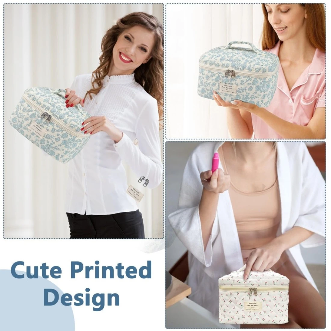 Large Makeup Bag, Cute Cosmetic Bag for Women Girls, Floral Coquette Aesthetic Toiletry Bag, Travel Make Up Organizer Bag