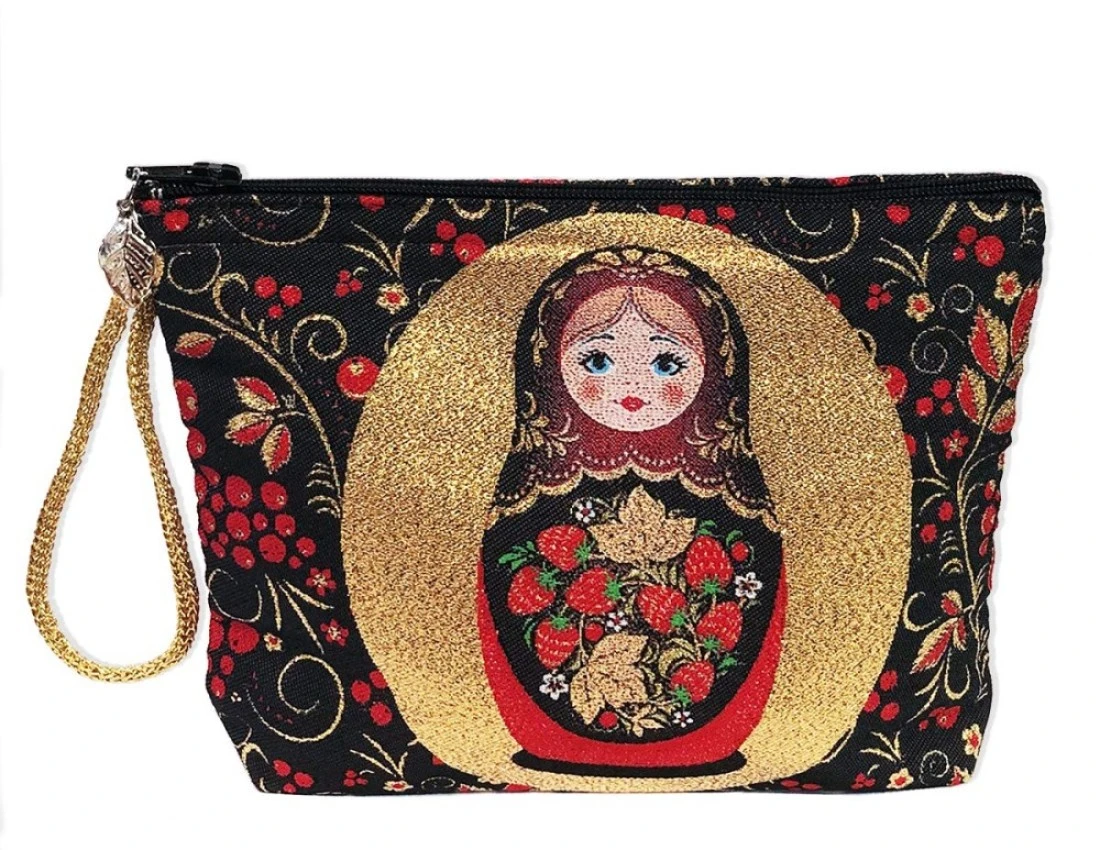 AWEHIRU Religious Gifts Russian Matryoshka Khokhloma Design Reversible Pouch Cosmetic Bag Purse 7 Inch