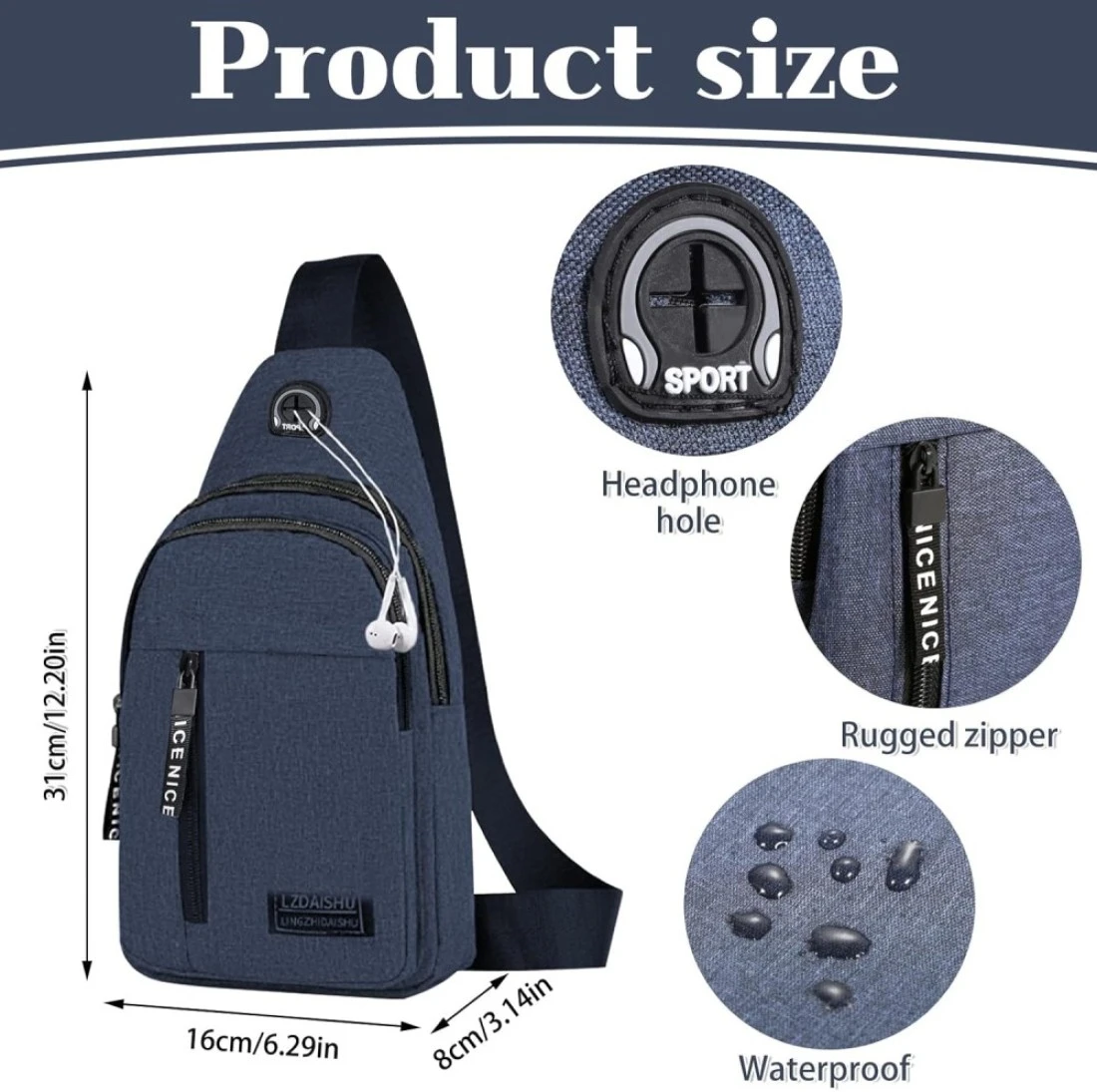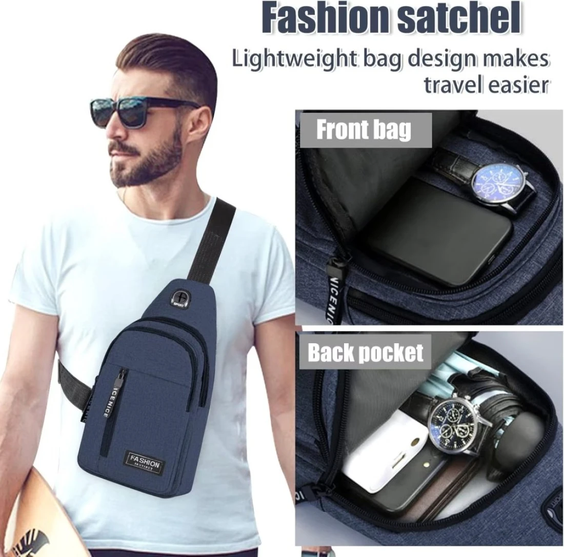 Small Sling Bag Crossbody Chest Shoulder Water Resistant Purse One Strap Travel Bag for Men Women With Earphone Hole