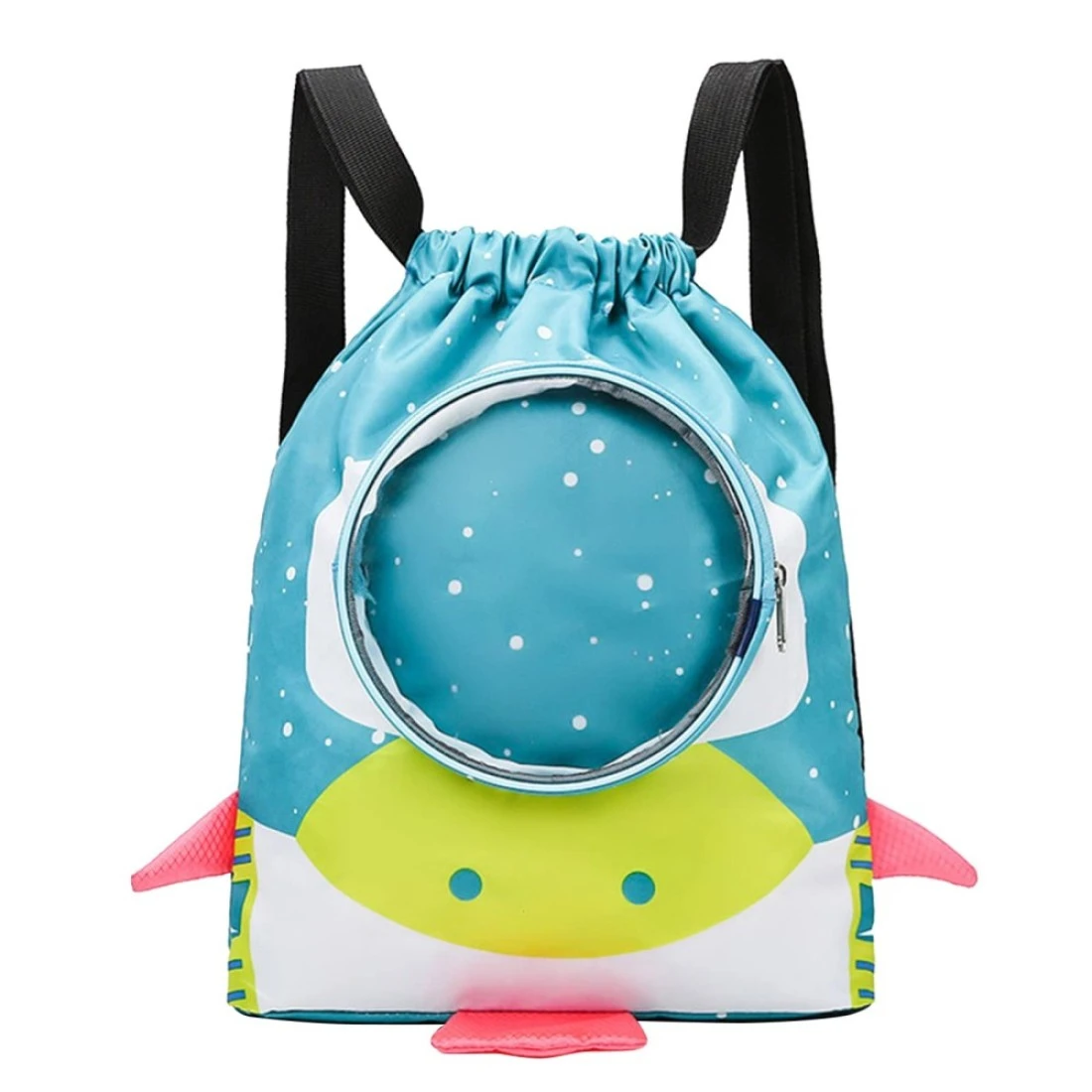 Premium material: The kids drawstring bag is made of high-quality nylon material and oxford cloth, which is easy to clean and use for a long time and soft. They are come in bright colors and beautiful patterns, especially kids can put pretty and cute accessories in the transparent layer., Adjustable Straps and Drawstring: Sports gym bag with drawstring opening design, which is easy to storage and avoid losing your belongings. Backpack bags are designed with adjustable straps that can be adjusted according to kids needs, don't make your kids feel too loose and too tight, Which are stylish and practical., Dry Wet Separated Design: The waterproof swim bag is designed with dry and wet separation. The dry compartment, you can store everyday items, such as water glass, phone charger, keys, earphones, tissues etc. Wet compartment is design PVC waterproof compartment bag, you can store umbrella,clothes ect., Wide Application: Kids storage pack are not only suitable for different outdoor scenes, such as beaches, swimming pools, water parks, camping and so on. It's also suitable as sports gym drawstring backpack, bookbags and daily casual drawstring backpack. Stylish and portable feature can be used in most scenes., Size: The kids drawstring backpack bag's size is 12.9 x 3.5 x 18.1inches. It is suit for kids from 3-12 years, and the recommended minimum age is 3 years.WARNING: CHOKING HAZARD-small parts. Not for children under 3 years. It is designed with a large main pocket with a drawstring closure, which has a large capacity. There is also a separate compartment outside the bag, you can put shoes or other necessary things.
