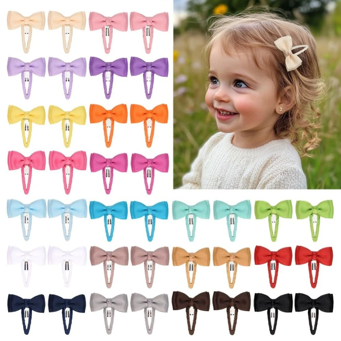 Ruyaa Hair Clips 40Pack Premium Quality Lightweight Hair Bows Snap Clips in 20 Colors Baby Barrettes Hair Pins Hair Bows for Pigtails Hair Accessories for Kids Children