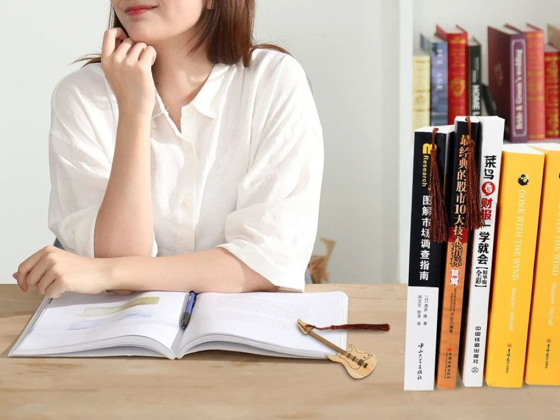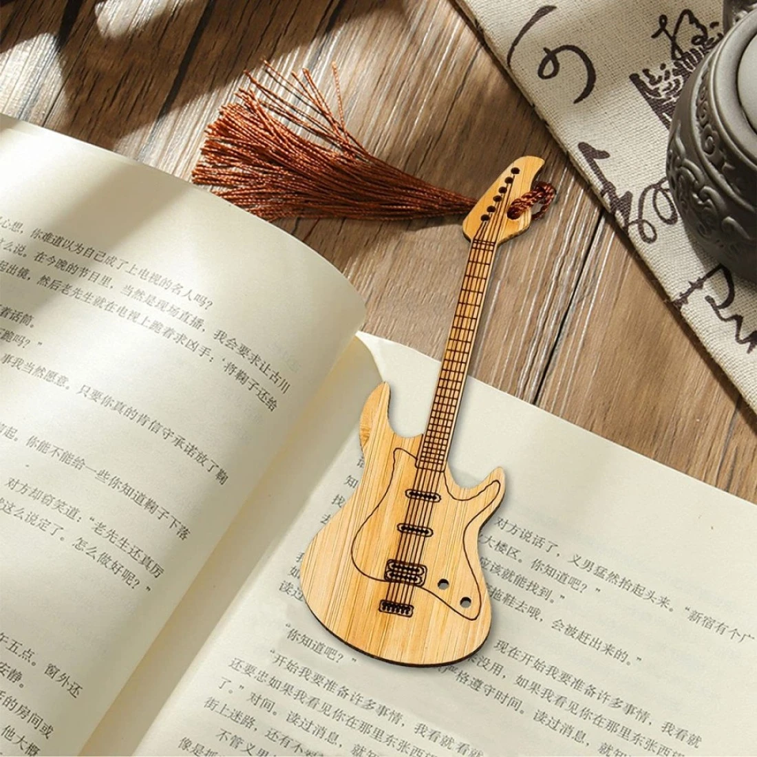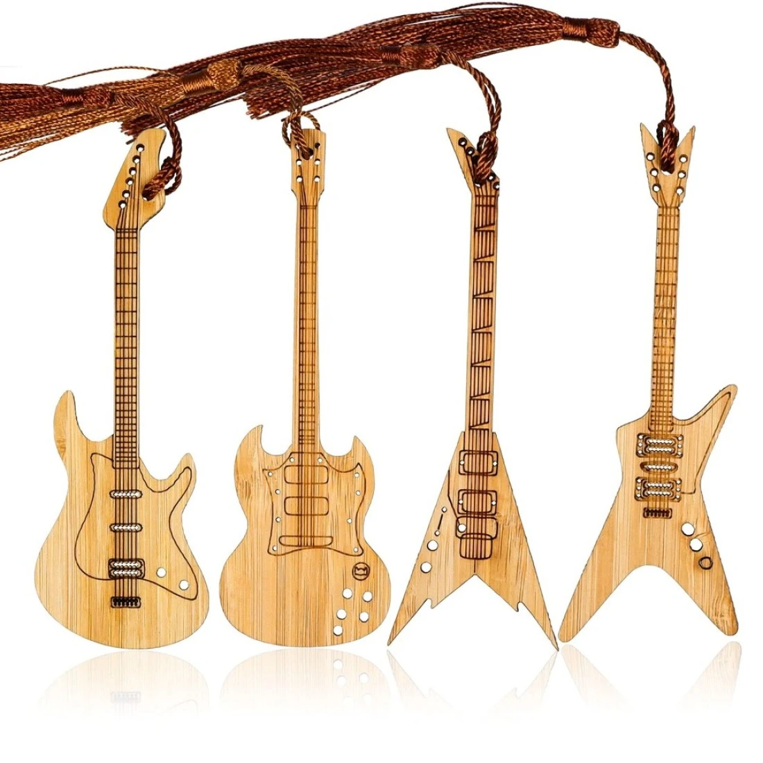 wocoxo Handmade Natural Bamboo Bookmark with TasselsUnique Vintage Style Reading Page Markers Bookmarks 4PCS Guitar Style