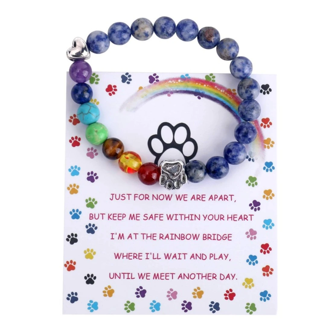 A Simple, Meaningful & Beautiful Remembrance:Memorial bracelet for your furry, four-legged, best friend,family member, Dog paw Bracelet: your friend's paw mark is always in your heart. And in the future of decades, you will meet on the rainbow bridge, Seven color beads: The bracelet is made of 8mm Round Beads, connected by elastic rope, easy to wear, Inside the package: you will get a velvet bag, a card with blessing words, a bracelet, a rainbow Brooch., Perfect After-Sales Service:If you have any questions, please feel free to email us. We promise to try our best to solve all problems for you.Free and easy return & exchange