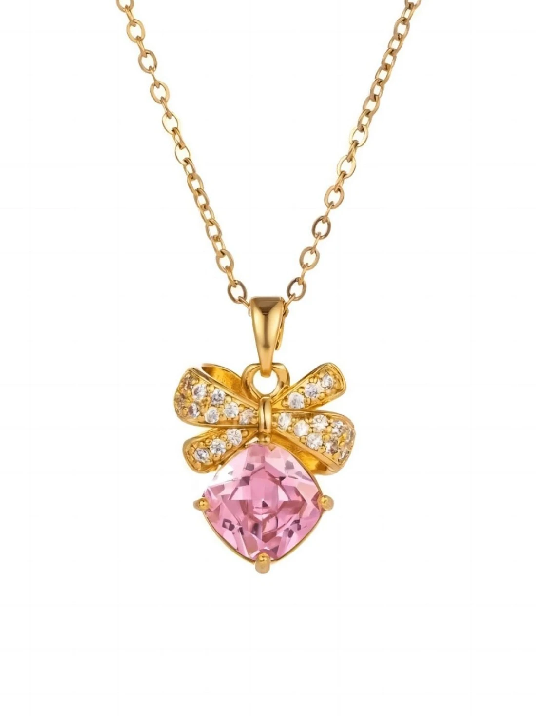 WUFENGJING 18K Gold Plating Bowknot Zircon Love Necklace 2023 New Versatile Necklace For Women Girls, Pink