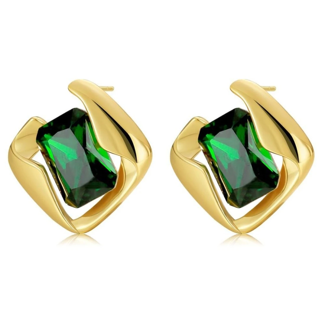 ZUOPOEKI Green Earrings for Women Trendy CZ Crystal Stud Earrings 18K Gold Plated Sterling Silver Post