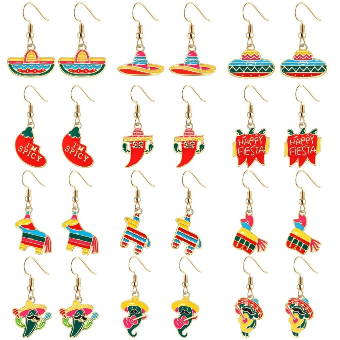 12 Pairs Mexican Earrings for Women Cinco De Mayo Fiesta Earrings Enamel Sombrero Pinata Chili Pepper Cactus Dangle Earrings Mexican Jewelry Holiday Gifts
