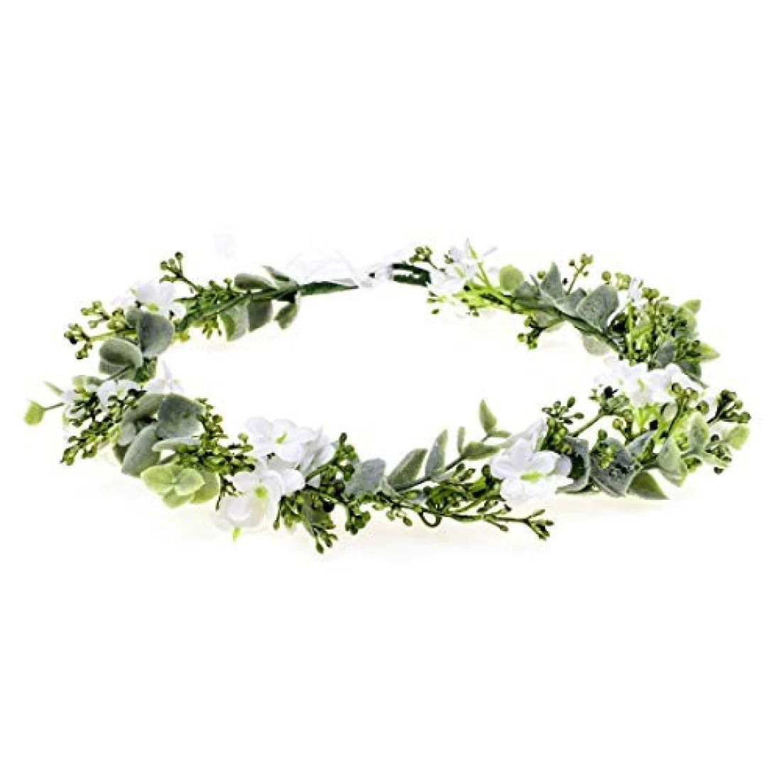 Vividsun Bridal Green Leaf Crown Bohemian Headpiece Floral Headband Photo Prop (white flower)