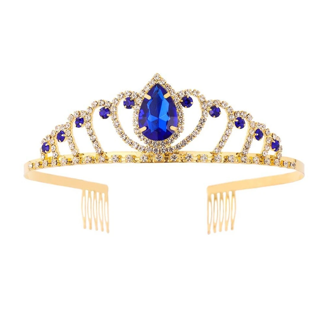 Metal Princess Crown Queen Party Supplies Hair Tiara Gold Crowns with Red Crystal and Side Combs (Blue)
