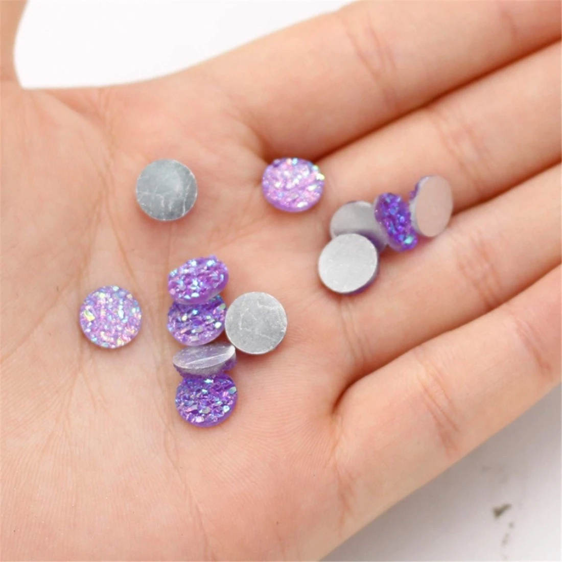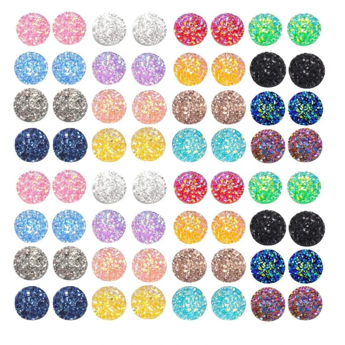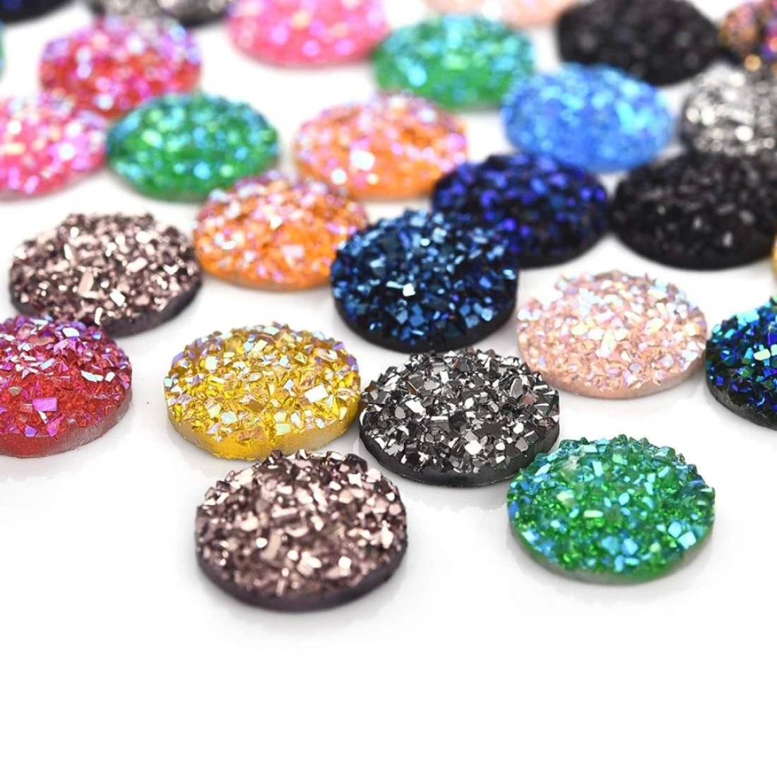 Vivian 204 Pieces 17 Colors Round Resin Cabochon Flatback Druzy Iridescent Colorful Cabochons DIY Accessories 8mm