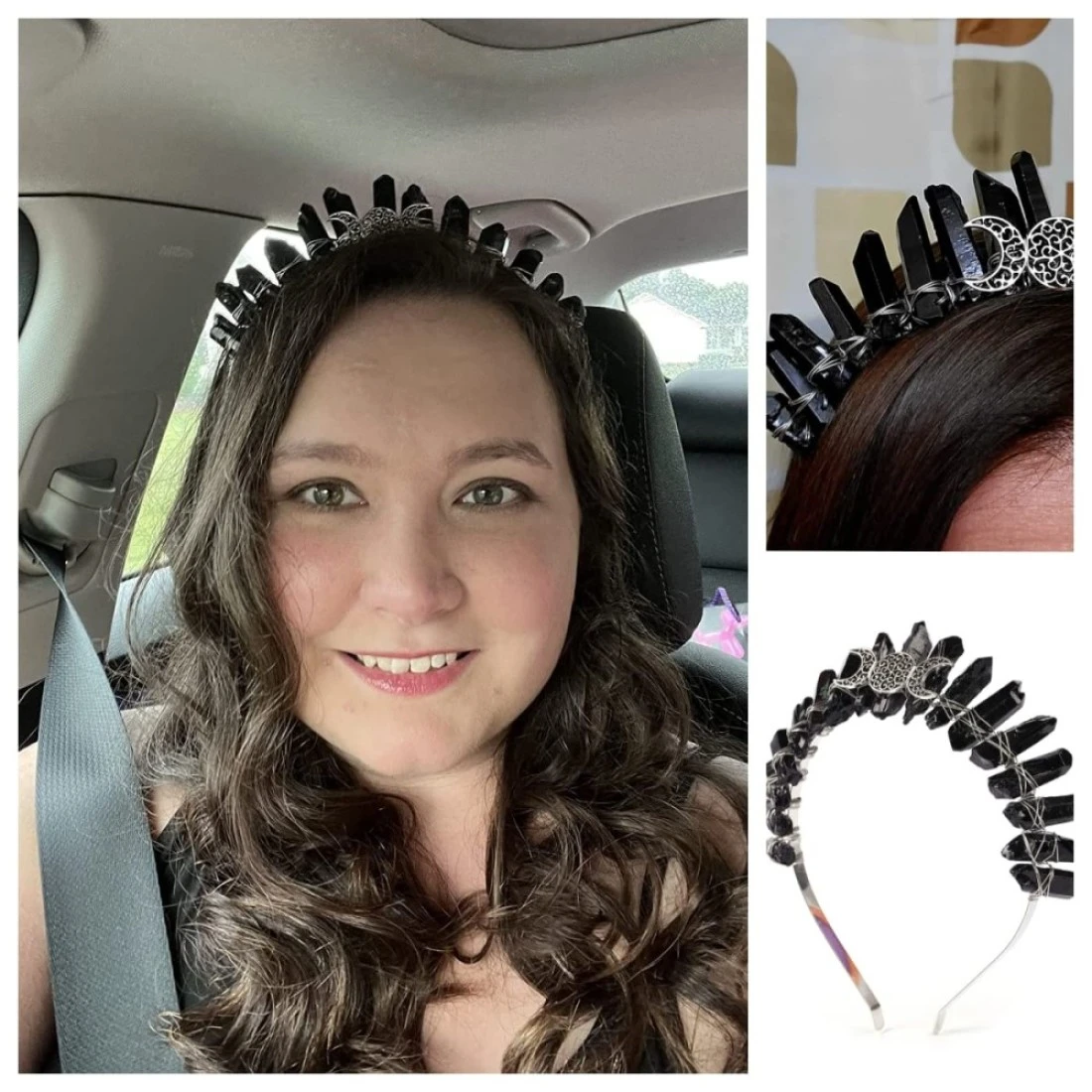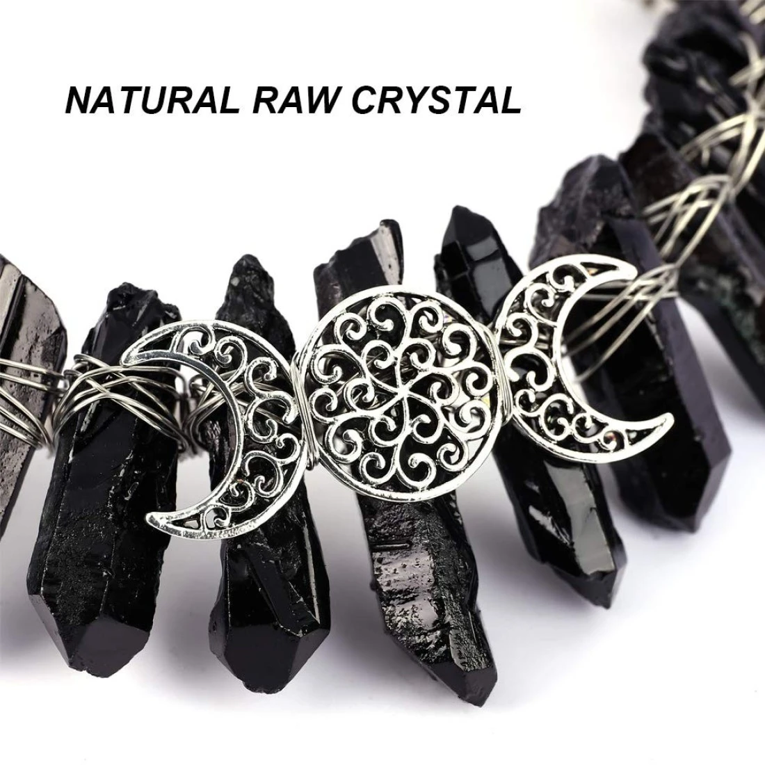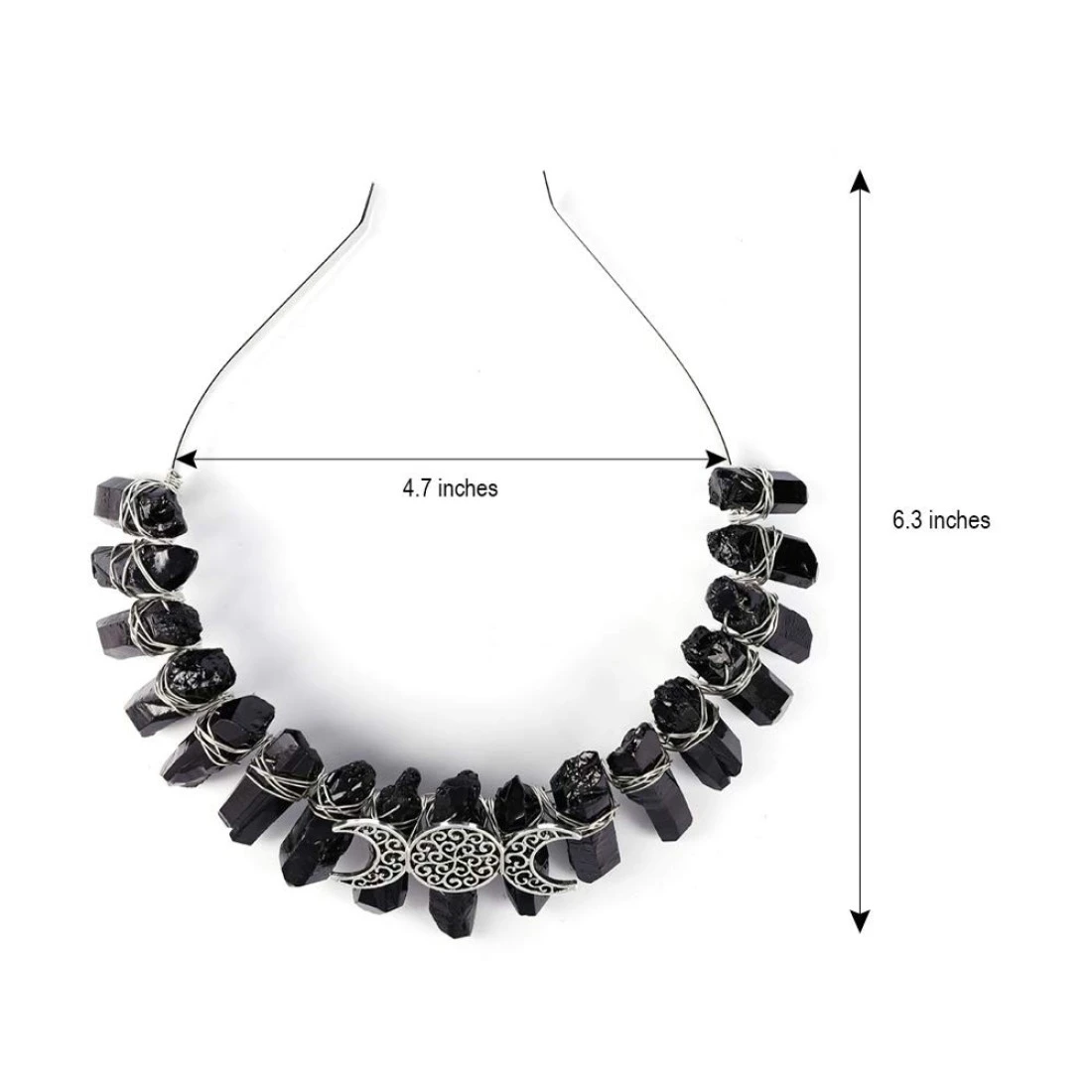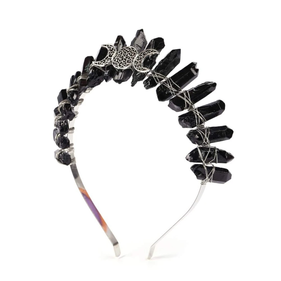 Bubbmi Black Raw Crystal Tiara Crown Headband Natural Quartz Moon Goddess Witch Headpiece for Wiccan Cosplay Party Headwear