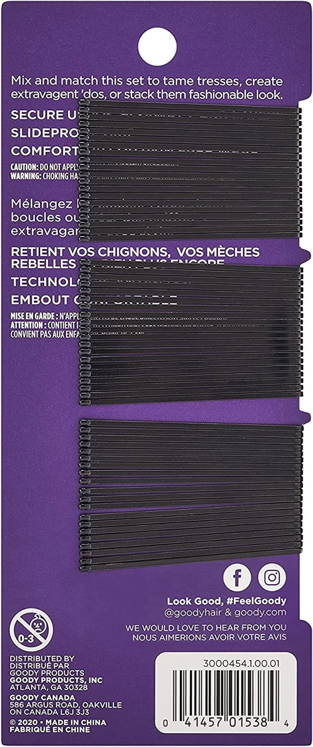 Goody SlideProof Bobby Pins, Black, 60-count (1942233)