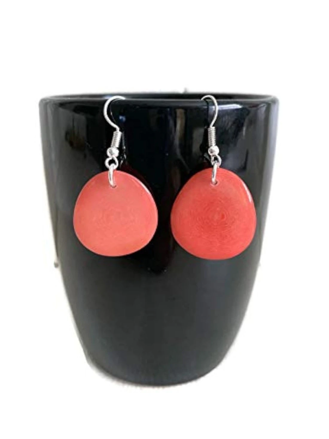 Tagua earrings in pink TAG272, organic light weight earrings salmon pink