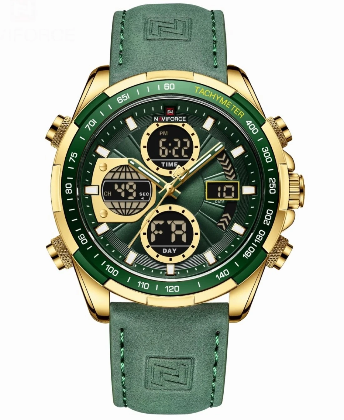 MULTIFUNCTION MILITARY WATCHES: Simple and luxurious chronograph dial;Three small windows display week and time alarm, stopwatch tachometer, day & date ,LED light display, sporty dial with digital and analog two time zones.let you read time easily. with military outlooking, catch people's eyes in crowd, it's a nice watch for men.Suitable for both outdoor sports and indoor activities., PREMIUM QUALITY MOVEMENT: sporty dial with japanese seiko analog and digital dual time zone display. can adjust the two zone display different times,it's a best choice watch for men when the traveling and business. keep precise time synchronization between the two places, COMFORT and DURABILITY Material: Anti-scratch mineral glass and environmental protection vacuum plating case never fade. Genuine leather strap, delicate and soft. BY AIMES offers a range of classic designer wrist watches specially crafted for men.The watch comes with 100% strong glass.The genuine leather strap with width 2.2cm, Length 22cm give the watch a stylish look., WATER & SCRATCH RESISTANT: The watch is 98.4FT/30M water resistant and can bear sweat, accidental rain or water splash. This watch is scratch resistant and provides a smooth feel. The durable strap is fully flexible and keeps your wrist ventilated., MENS PERFECT GIFT: This versatile watch blends in with every occasion be it formal or casual. Wear this watch on the go, from business, leisure to indoor and outdoor activities or for daily use. The AIMES wrist watch is a perfect gift for you and your loved ones.Offer 12-month warraty, if you have questions, contact us freely.