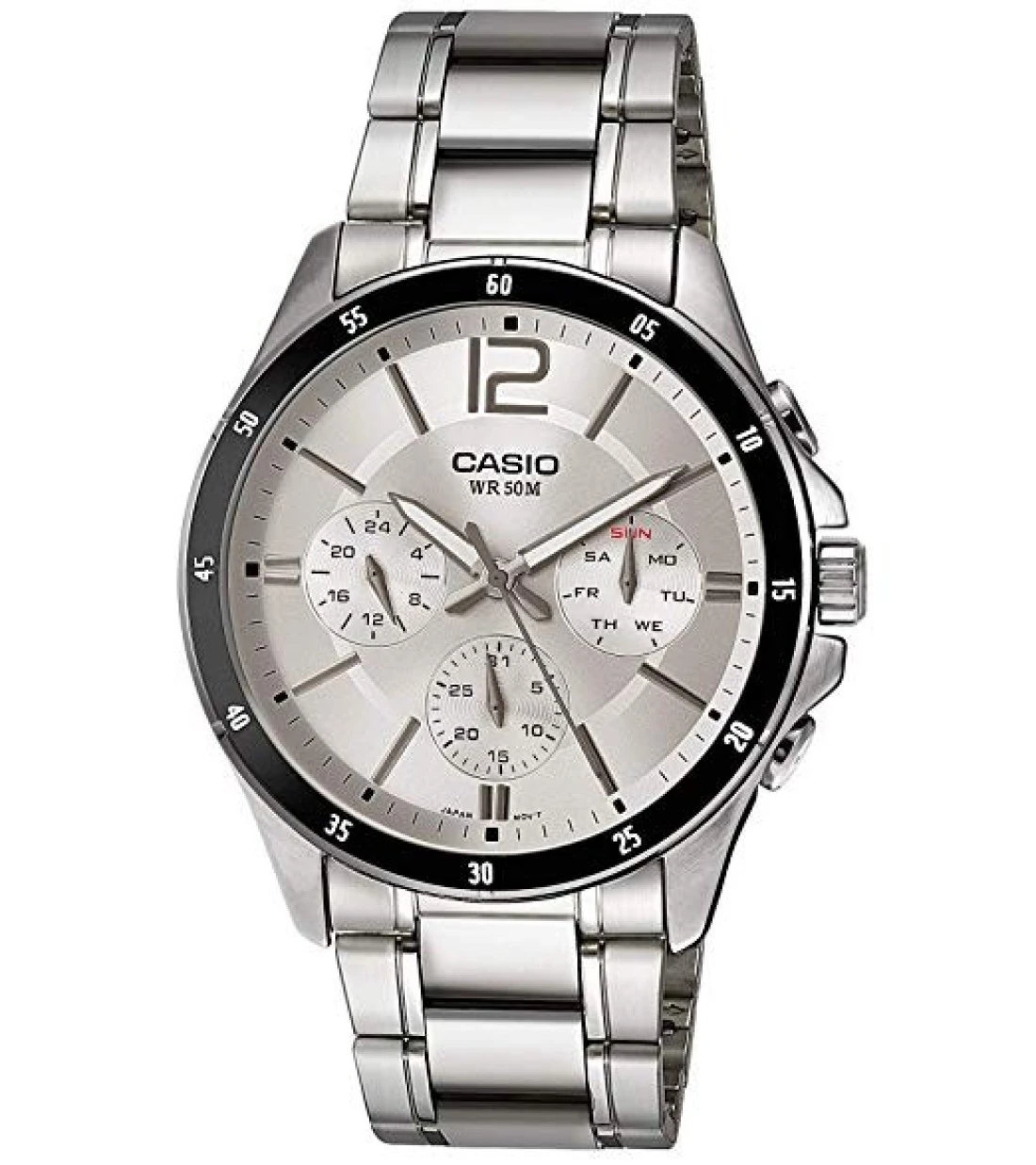 Casio WatchWatch Shape: Round Band Material: Stainless Steel Display Type: Analog Targeted Group: Men Type: Casual Watch Band Color: Silver Dial Color: White Movement Type: Quartz Case Diameter: 35 mm Water Resistance Depth: 50 m Water Resistance: YesDisplay Type: AnalogType :Casual WatchModel Number: MTP-1374D-7AVDFUPC: 4971850924524