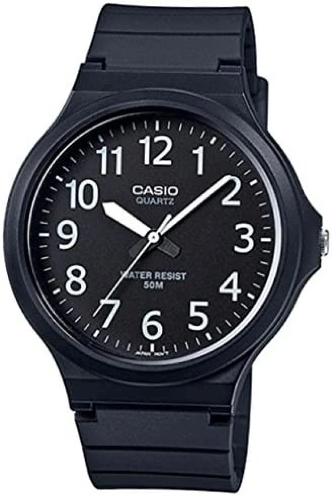 Case and black resin band combo will work with every outfit and will quickly become a staple piece in any wardrobe. With a 50 meters / 165 feet / 5 atm water resistance and durable mineral crystal, this watch will keep on ticking and looking great even on your toughest days. Set the trends with your impeccable fashion sense and amp up your wardrobe with the latest from Casio Easy To Read watches.