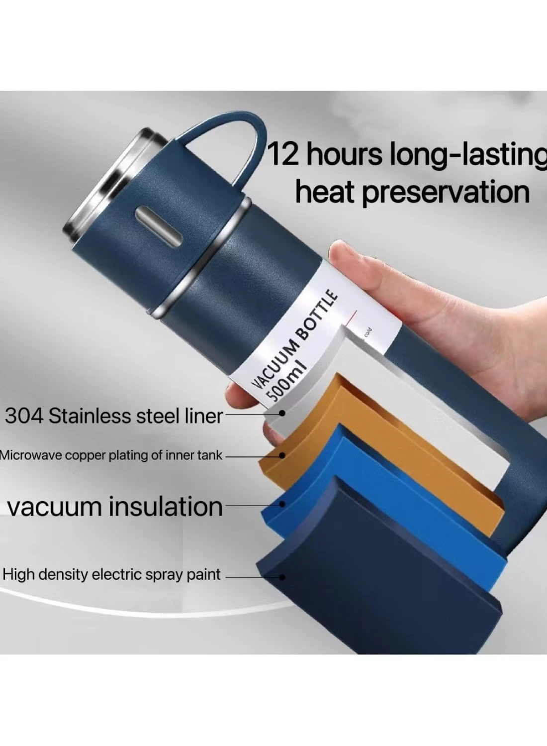 Thermos Bottle Set - Double-Layer Stainless Steel Vacuum Flask, Insulated Travel Water Bottle with Business Tea Cup, Keeps Drinks Hot or Cold