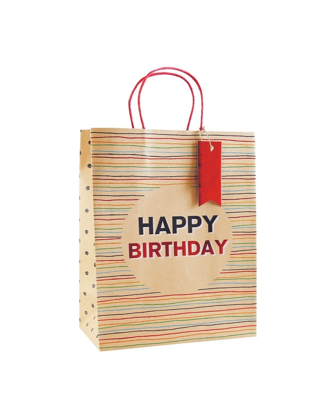 Eurowrap Kraft Birthday Stripes Large Gift Bag - Elegant Design, Eco-Friendly Kraft Paper bag for Design Birthday Celebration