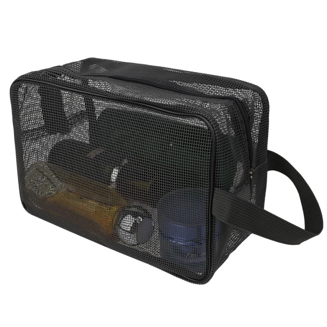 cobee Mesh Shower Bag, Portable Mesh Shower Caddy, Quick Dry Tote Bag with Zipper, Toiletry Organizer Bag for Gym Travel Camping Swimming Beach(Black)