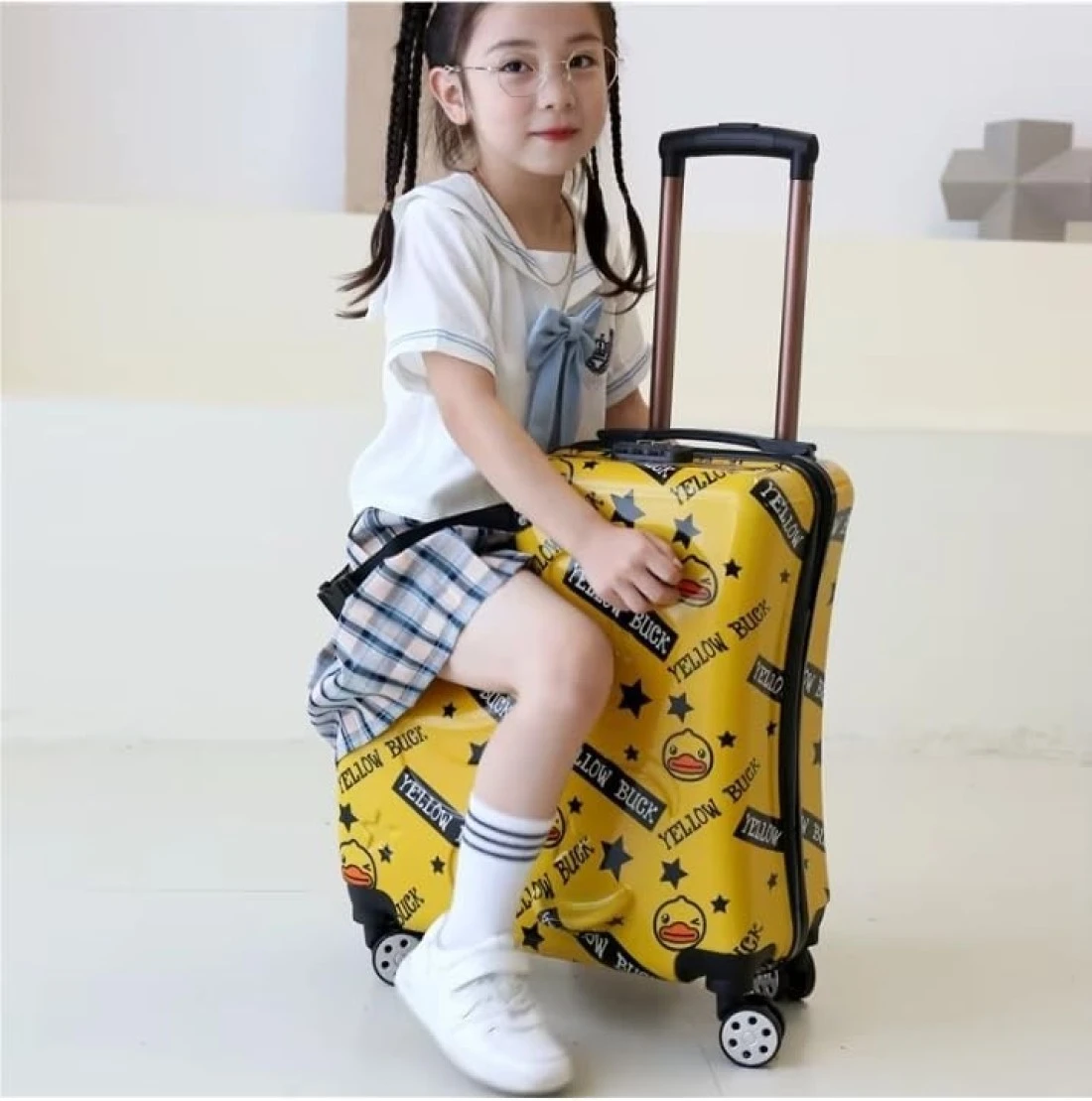 Kids Ride-On Travel Suitcase with Wheels - Spinner Carry-On Trolley Case with Password Lock, Universal Wheels for Ages 1-6