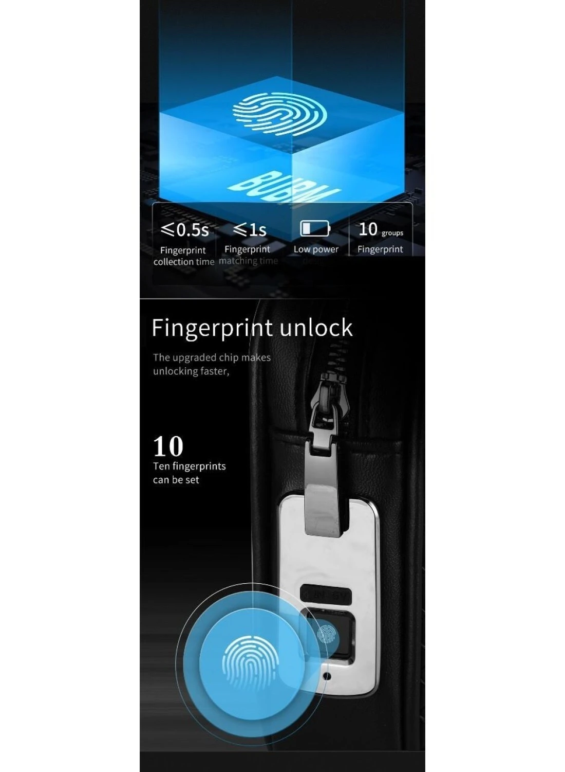 Ust lock and unlock with your fingerprint no key or password required.No longer have to worry about password being cracked.Simple and Stylish business clutch bag.Unique and excellent design. Ingenuity, carefully selected soft leather. Fingerprint unlock - your finger can unlock.Intelligent processing chip, fast recognition, one touch open immediately.