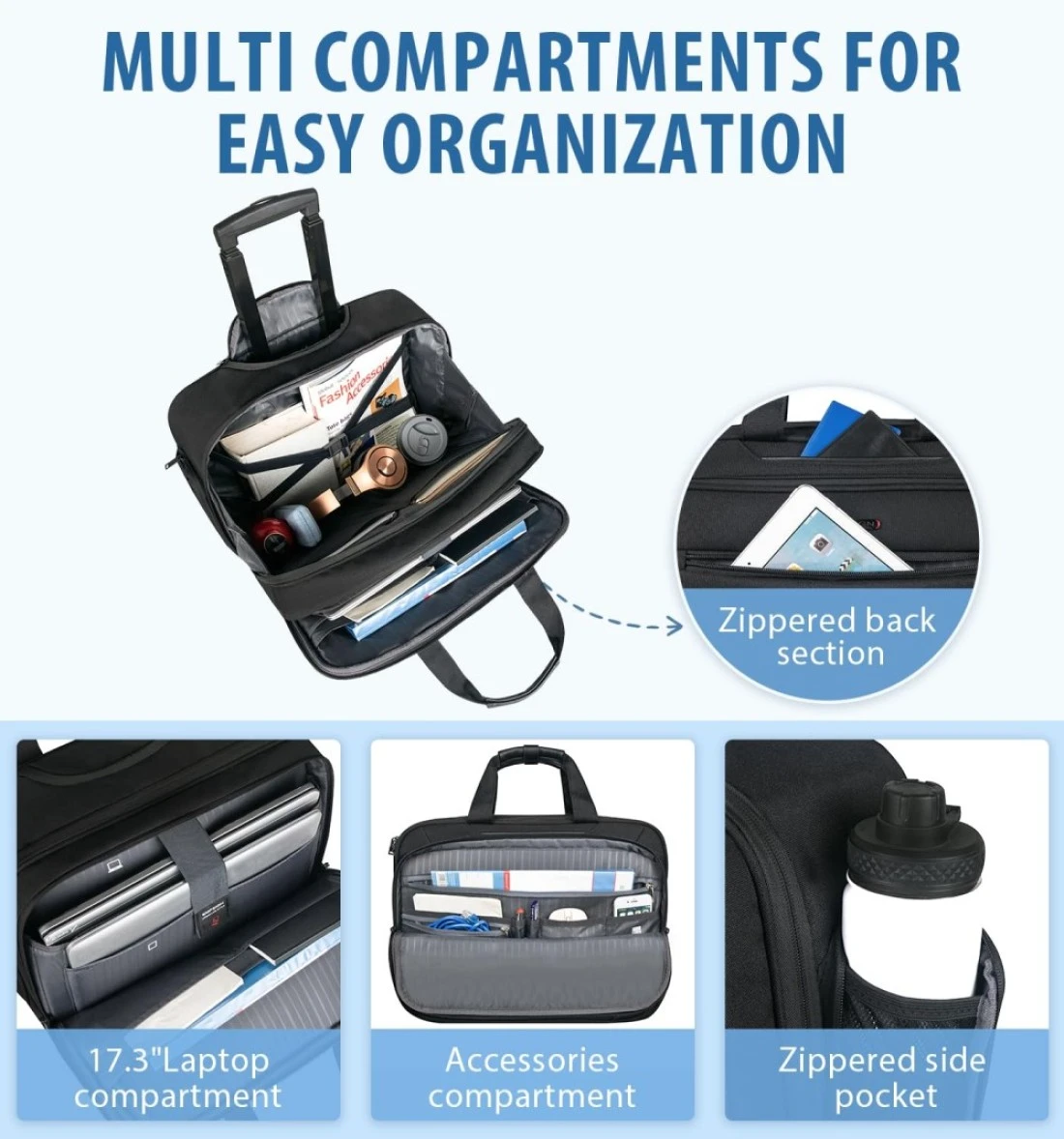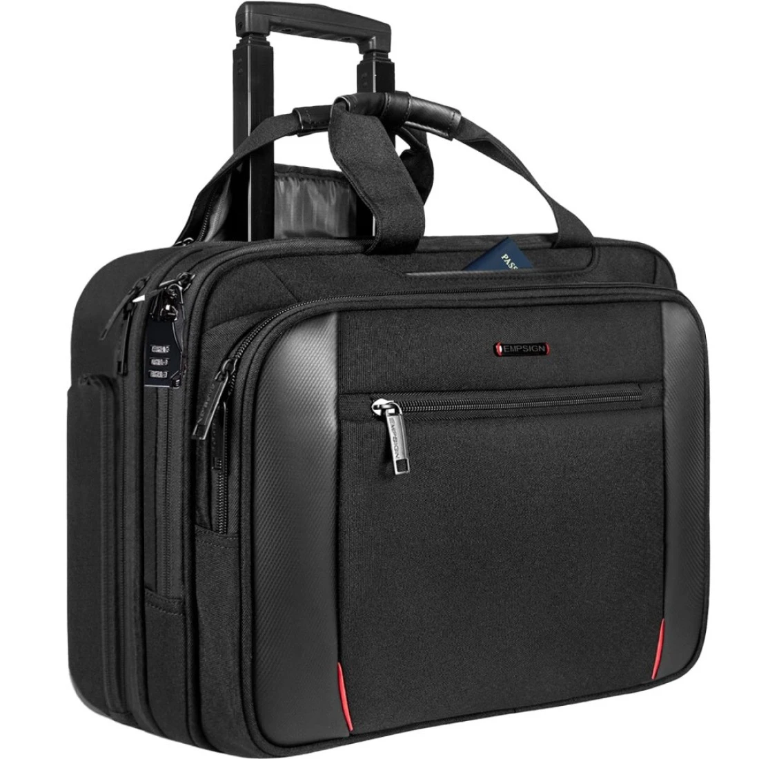 EMPSIGN Rolling Briefcase Laptop Bag173 Computer bag with wheels Water Repellent Travel Roller Underseat Bag with RFID Blocking PocketRolling Work Bags for womenmen Black