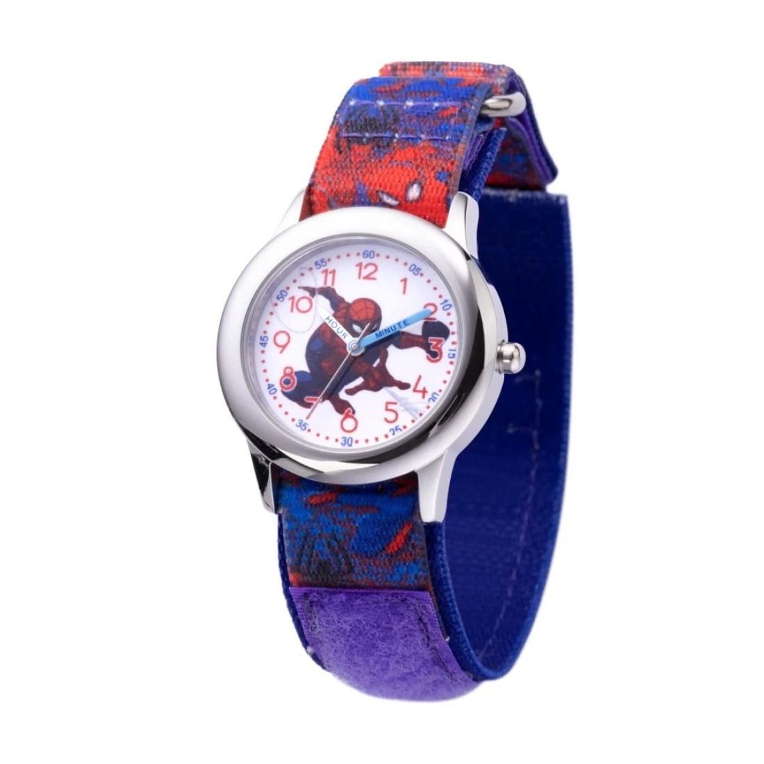TIME TO TELL TIME BROCHURE- Included with each purchase is an interactive Time Teacher Punch Out Clock, giving kids and parents a fun way to learn how to tell time., EASY TO READ DIAL- Design with labeled "HOUR" and "MINUTE" dial hands and a minute track to help children learn to tell time., OFFICIALLY LICENSED MARVEL WATCH. For the Marvel Super Fan, Our Marvel Collection is a compilation of your favorite superheroes from the Marvel Universe., QUALITY MATERIALS- Our Marvel watches are lab tested and made with high-quality stainless steel for cases. The case diameter measures 32mm, and the bracelet size of 16mm., WATER RESISTANT- Up to 30 meters (100ft), meaning safe to wear in the rain or get splashed. DO NOT recommend wearing it when bathing, swimming, diving, etc.
