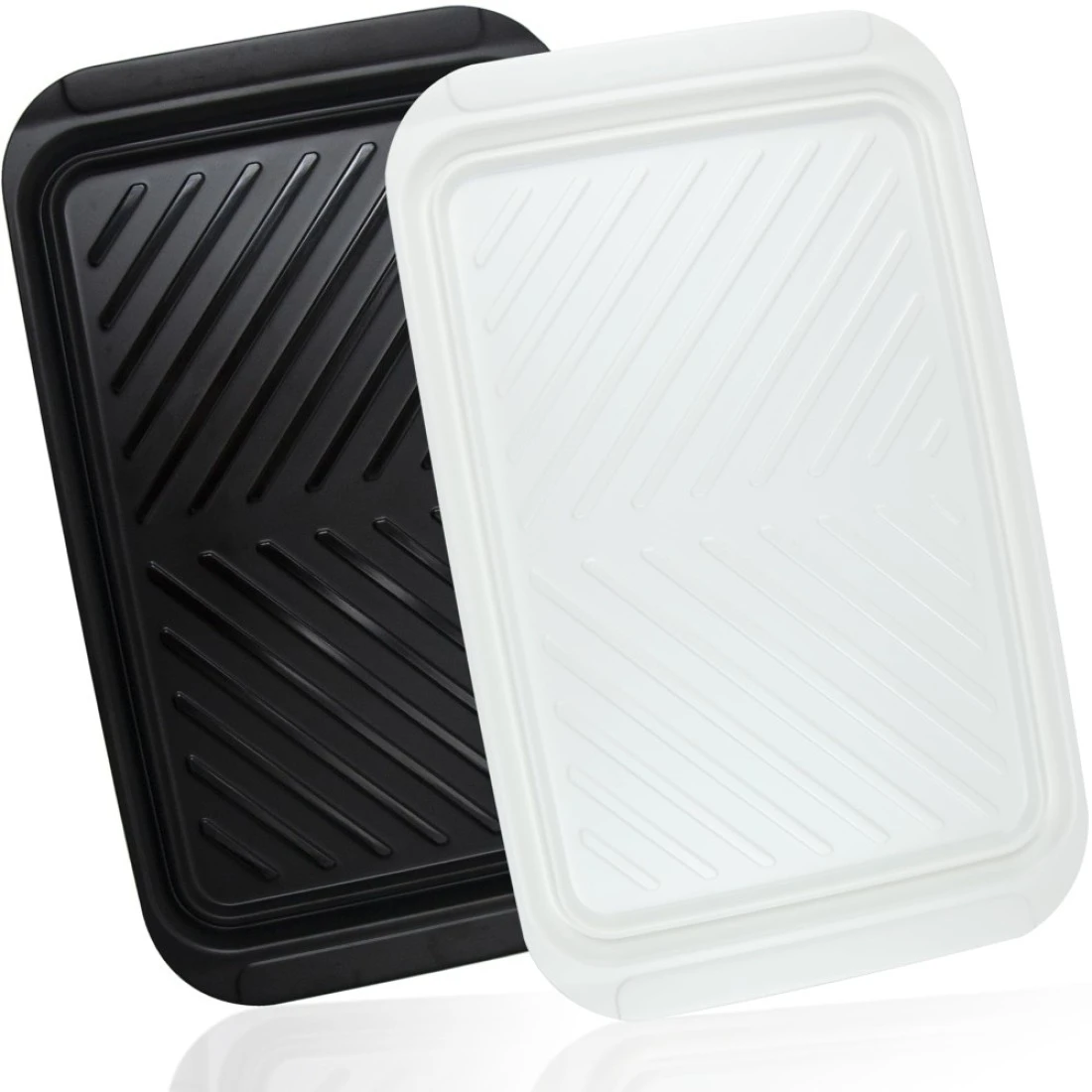 Czlizdyt Grilling Prep and Serving Platter, BBQ Tray for Raw and Cooked Food, Melamine Serving Platter for Food, Set of 2, Black and White, Napkin and Cleaning Clothes Included