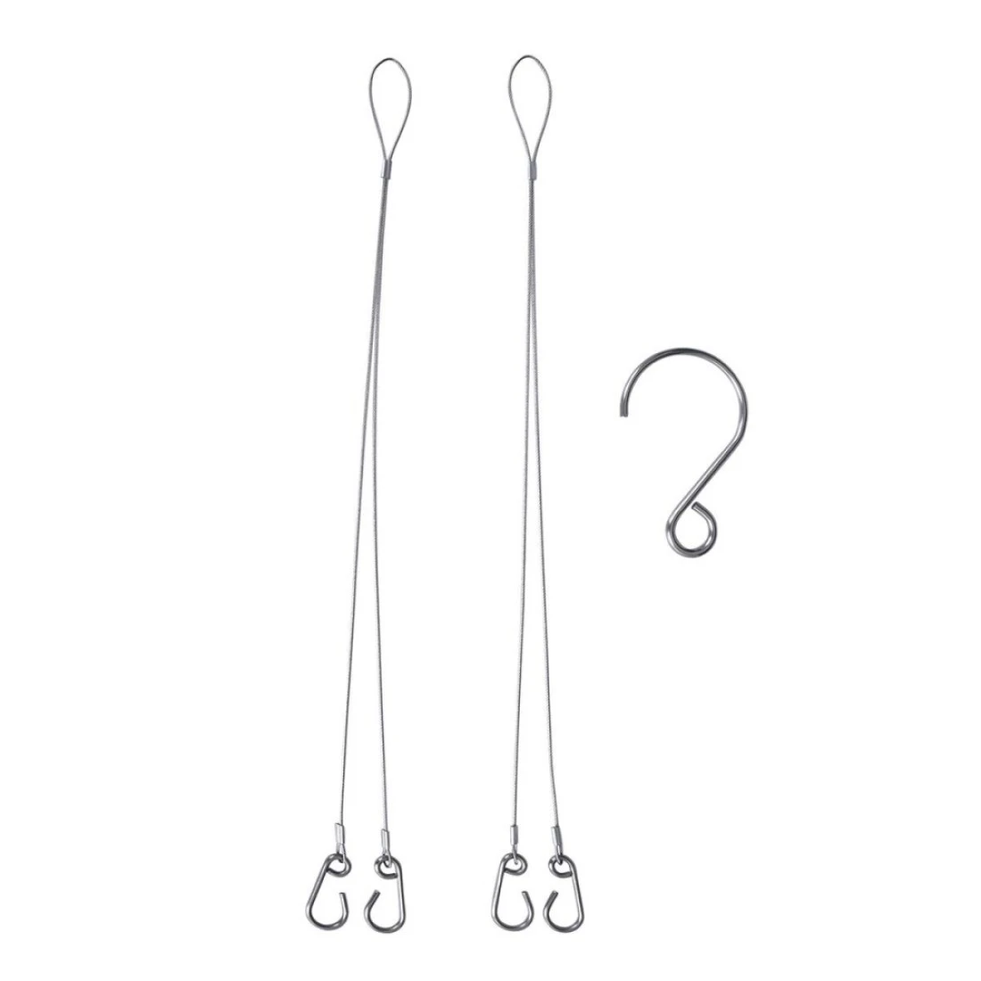 1.Package Included: 2* Stainless steel chains,4* Small Hooks,1 Big Hooks., 2.Size: 420mm*Φ1mm (chain),100mm*65mm*Φ4mm (Hook),the maximal load-bearing is 20KG., 3.Widely used: Good for hanging camping pots,camping lights,grill plate and so on., 4.Lightweight and Stable:The weight is only 43g,it's easy to carry. And the four corners design make it is very stable and safe., 5.Easy to use:The Hanging Chain is easily to use and easy to store.It's an indispensable equipment for camping and other outdoor activities.