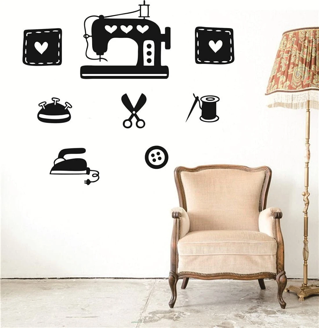 * About Size : The Sheet size is 60x40cm you receive , You can DIY Paste it , The FINISHED size depend you hoe to stick it !, * Picture may not reflect true size. It is Digital example for showing purpose. To make the decal fit you space 100% you should measure your space, *We use high quality matte vinyl that looks like paint once applied to the wall and non-toxic , environment protection, *Our Wall Decal Can be applied to any smooth surface, such as wall,glass door, window pane, this decal suit for sewing shop,tailor shop and bedroom, *Our Vinyl are easily removable however, are NOT reusable. So When you stick it prepare all tools and take biggest patients , if its big item may need two people help!