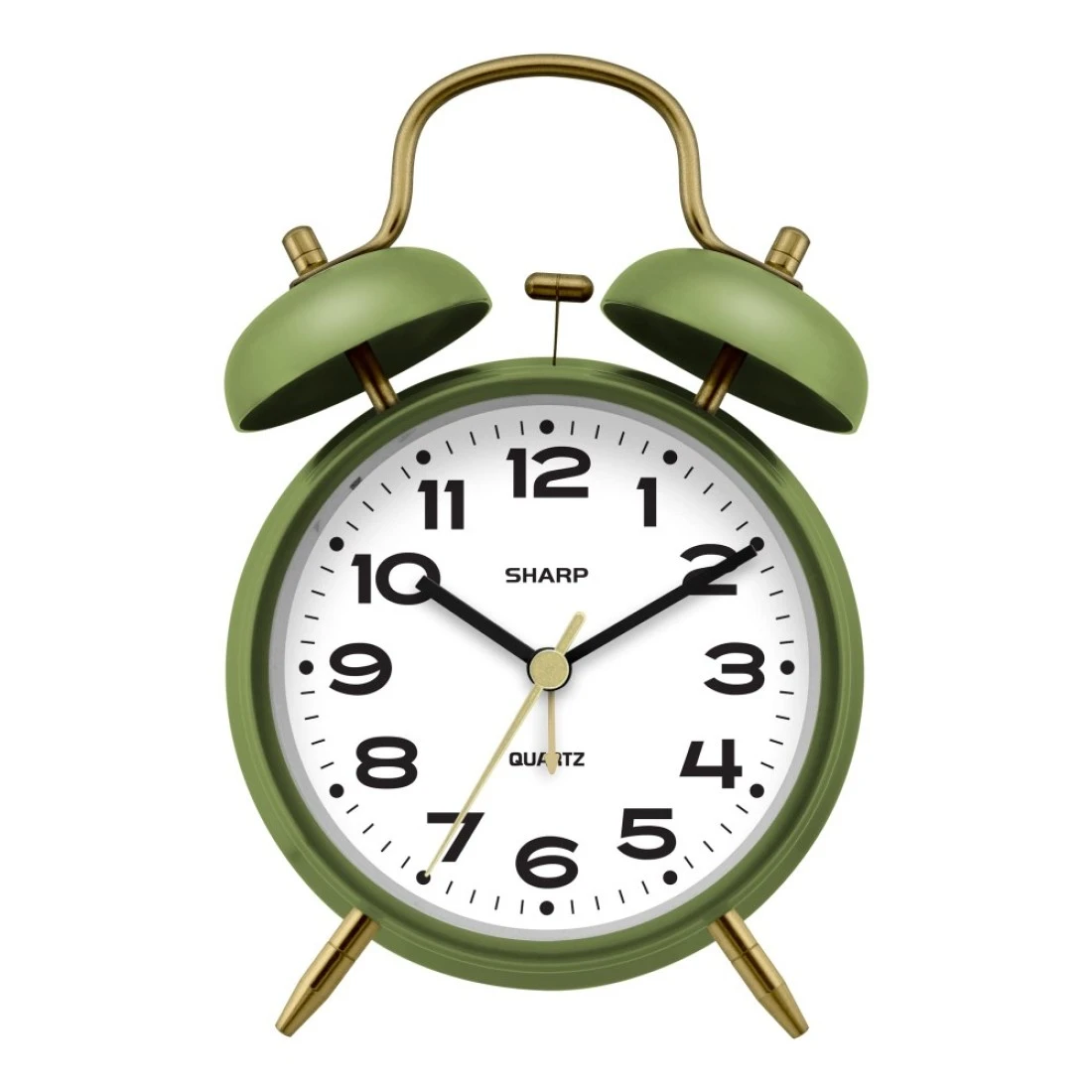 Sharp Twin Bell Alarm Clock, Loud Alarm Great for Heavy Sleepers - Stylish Matte Finish with Rustic Bronze Accents, Battery Operated (Matte Sage)